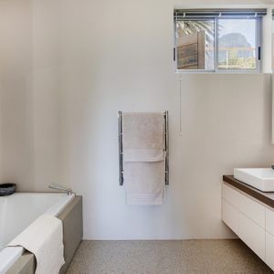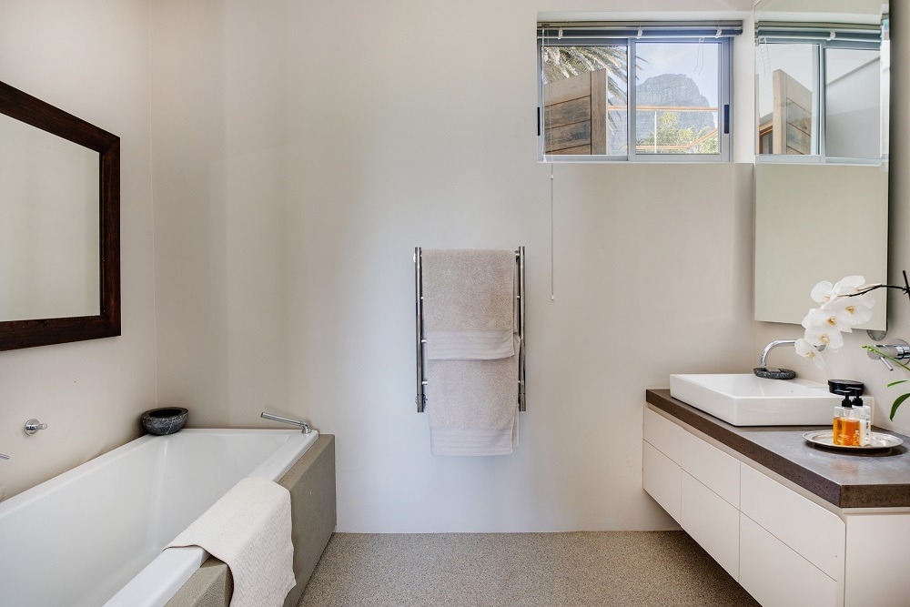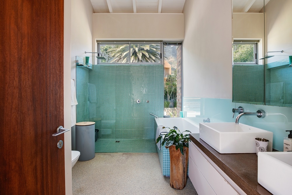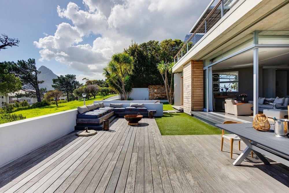 A distinctive feature of this abode is its expansive front covered terrace and generously sized back garden—a rarity in Camps Bay. These spaces are a haven for sun enthusiasts, providing an all-day sunbathing experience against a backdrop of serene surroundings.