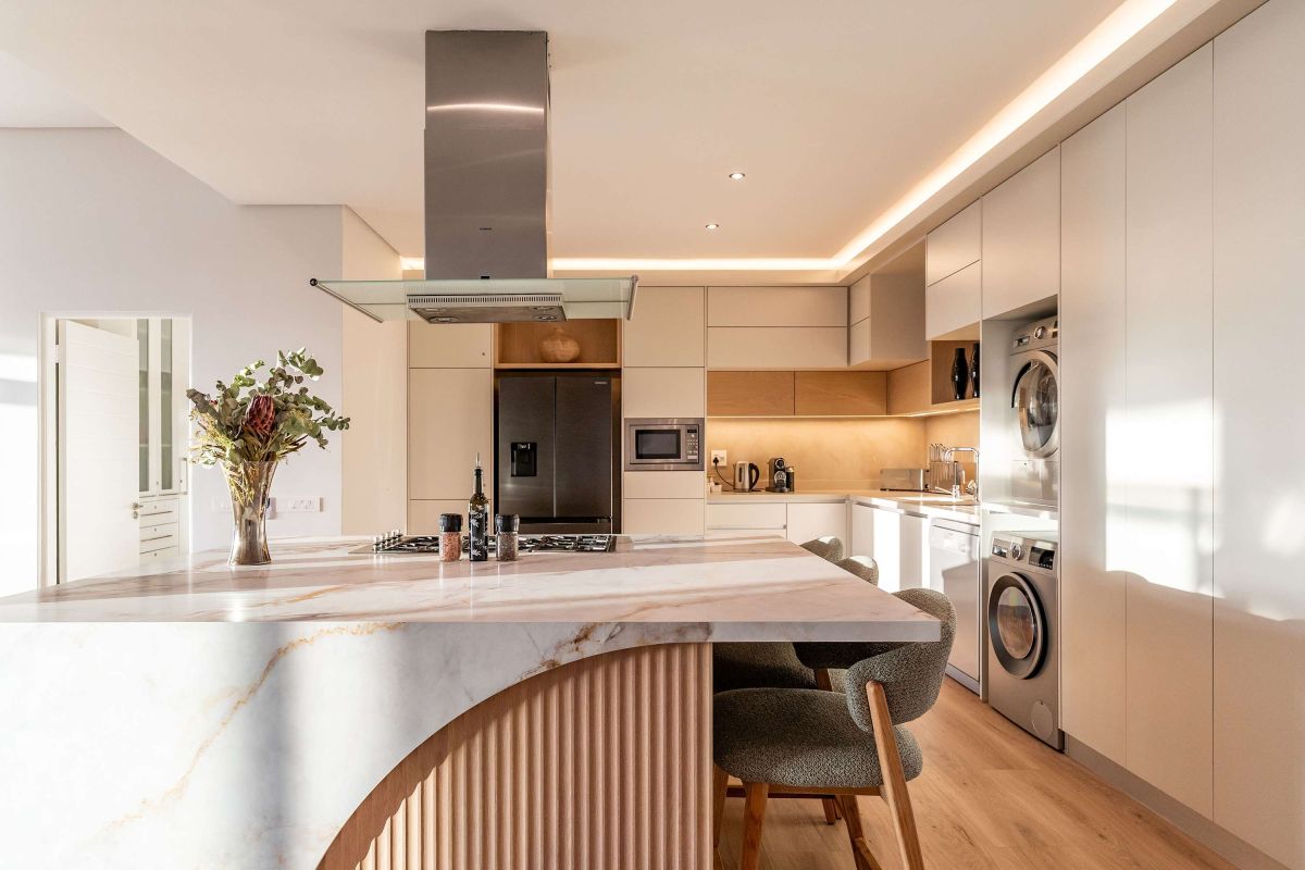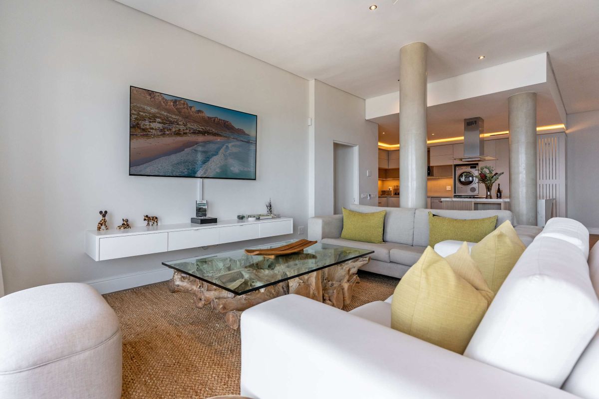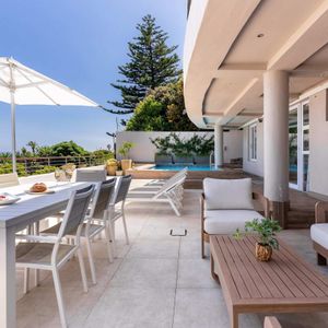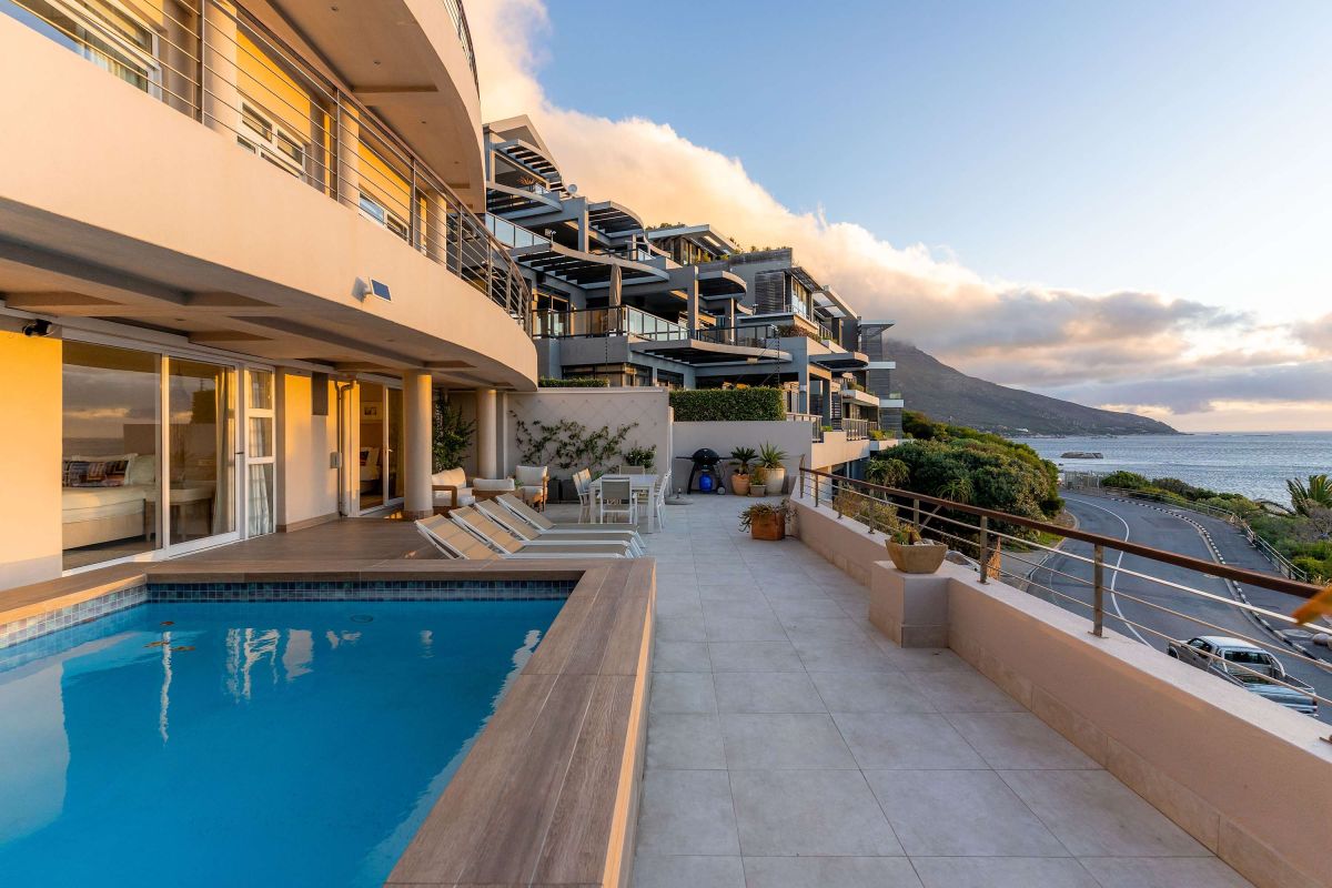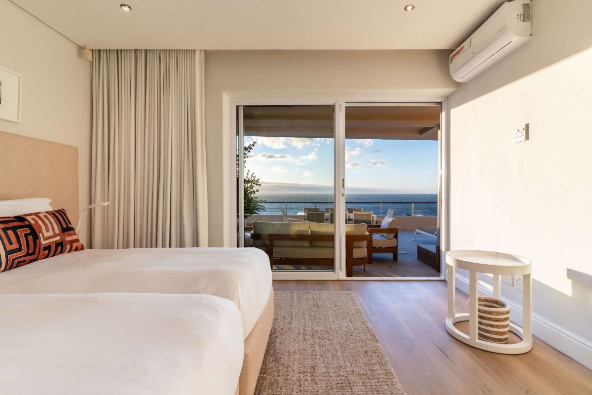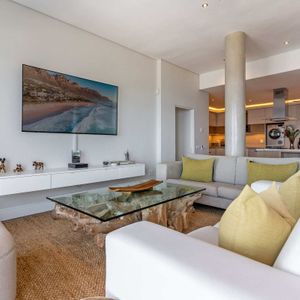 Bakoven Serenity is a luxurious coastal vacation apartment that captures the essence of seaside tranquillity and elegance. Nestled at the foot of the majestic Twelve Apostle Mountains and just 80 meters from the Atlantic Ocean, this spacious four-bedroom retreat offers breathtaking views and a seamless blend of comfort and style. Upon entering the main unit, guests are welcomed by expansive living spaces that open up to panoramic vistas of the ocean and mountains.