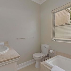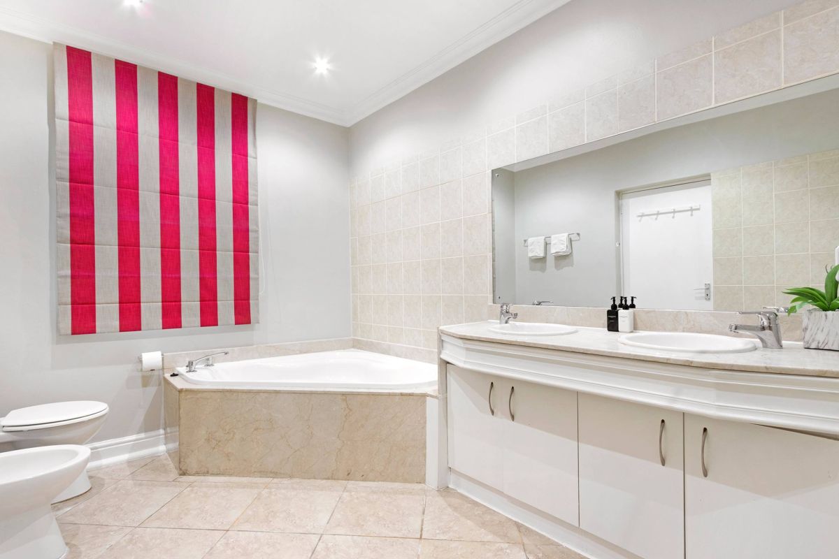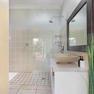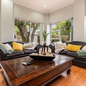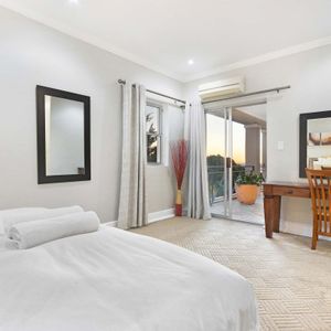 Fully secure with an alarm, the villa has a double garage for two cars and off-street parking for visitors. A short walk will take you to the beautiful beaches of Camps Bay and the bustling restaurants, cafés, and bars along the beachfront. The Table Mountain Cableway and the V&A Waterfront are just a 15-minute drive away.