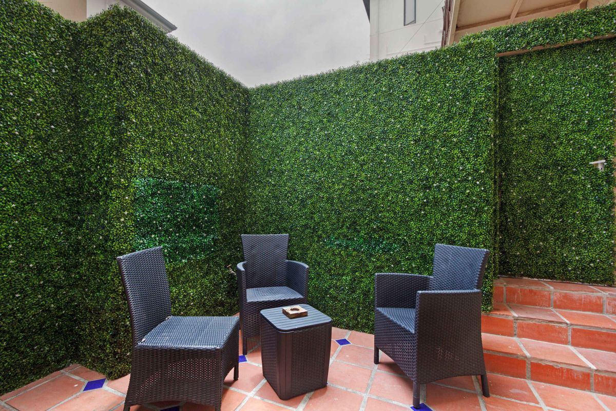 • Shady patio with outdoor furniture