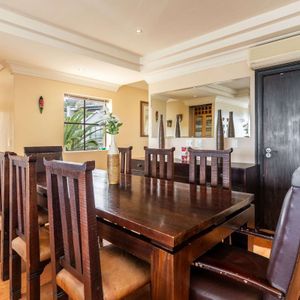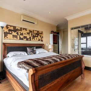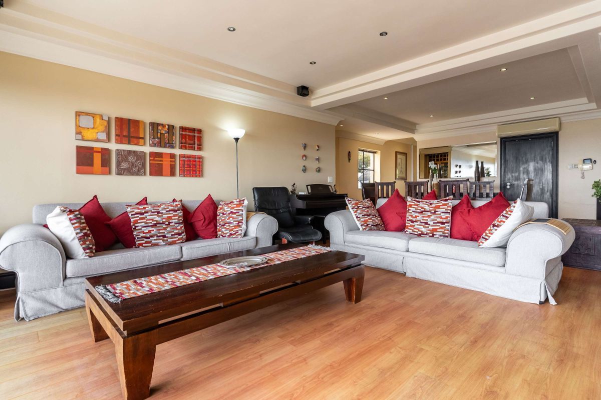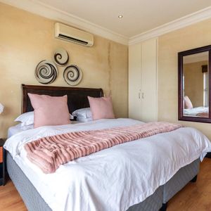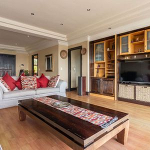 The top floor unit offers additional family areas with dark wooded African renaissance décor. Enjoy a Jacuzzi on the patio, perfect for sipping sundowners and watching the sunset over the Atlantic Ocean. The lower villa’s outdoor space includes a large swimming pool with a security fence around it, a manicured garden, and a covered patio ideal for outdoor dining. Fully secure with an alarm system, the Manor also offers double garage parking for 2 cars and off-street parking for visitors.