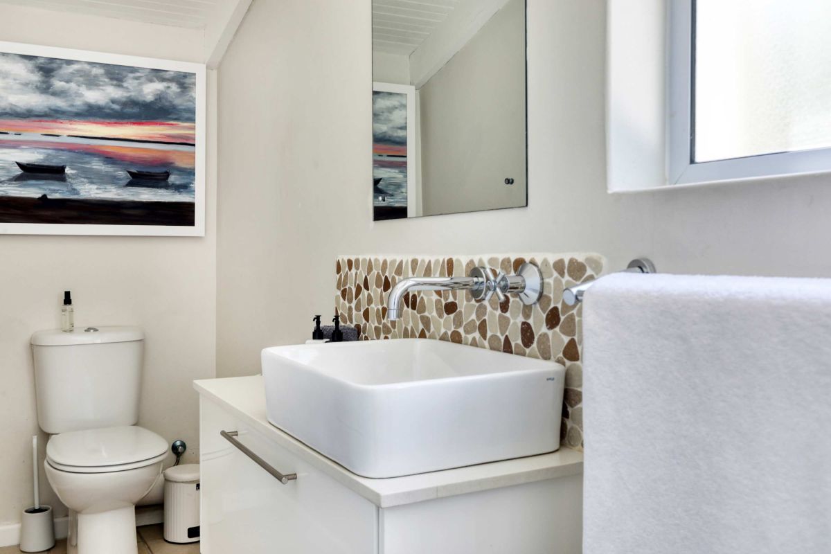 On the first level, you'll find 4 comfortable bedrooms and 2 bathrooms - 1 en-suite bathroom connected to the master bedroom and 1 family bathroom shared by the other bedrooms. The master bedroom has a beautiful view of the Atlantic Ocean, a large en-suite bathroom and ample cupboard space. Bedroom 2, 3 and 4 share a family bathroom. The 5th bedroom is situated just off the dining area and boasts it’s own en-suite bathroom.