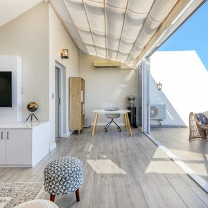 On the second level, discover the two main bedrooms, both facing the sea and offering direct access to the shared balcony. One bedroom boasts an en-suite bathroom, while the other enjoys access to a separate full bathroom. Step out onto the expansive balcony and relish the breath-taking summer sunsets that grace Cape Town's Atlantic Sea Board shoreline.