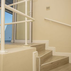 As you step into the apartment, a spacious entrance hall welcomes you, leading directly to the lower level. Here, you'll find the living area and the third bedroom.