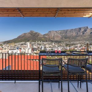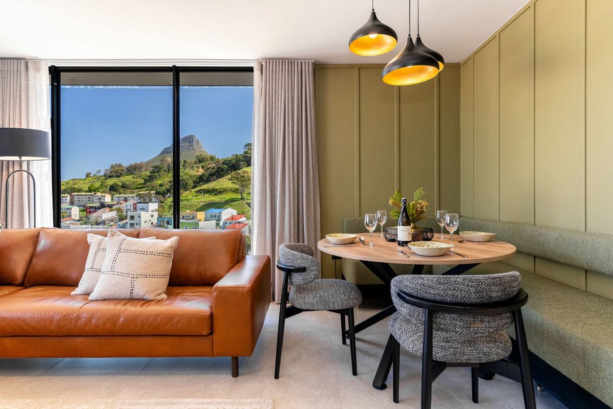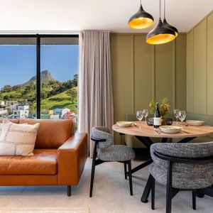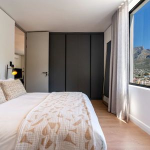 Step inside and be greeted by a spacious, light-filled living area designed for unwinding or entertaining. The open-plan layout flows seamlessly from the cozy lounge to a private balcony, where sweeping views of Table Mountain and the city skyline create the perfect backdrop for morning coffee or sunset cocktails.