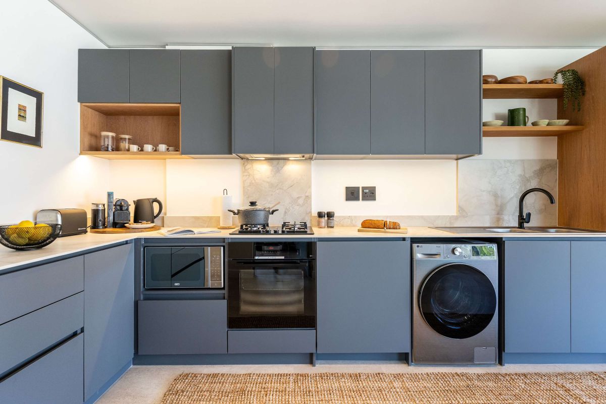 The fully equipped kitchen invites you to cook up a storm, with modern appliances. Share meals and stories around the stylish dining table, or explore the local culinary scene just steps away.