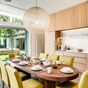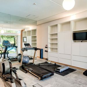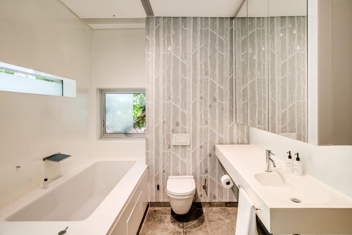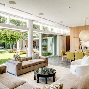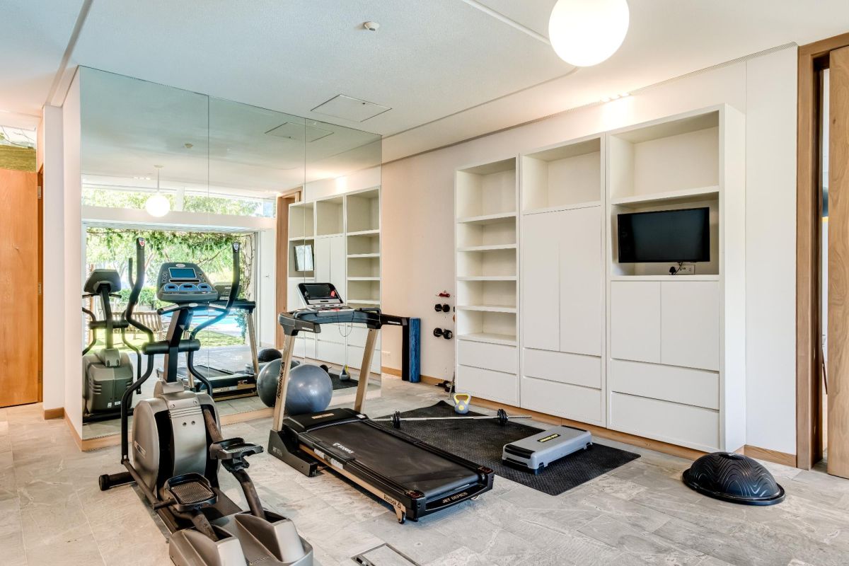 An entertainment room with a bar, along with a dedicated cinema complete with a wet bar and private bathroom, ensures effortless hosting. A study, boardroom, and gym add further versatility, each opening directly onto the pool terrace and its tranquil outlook.