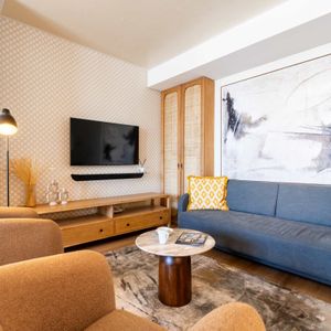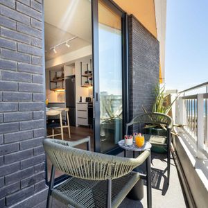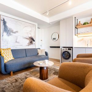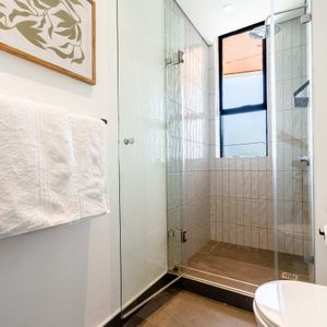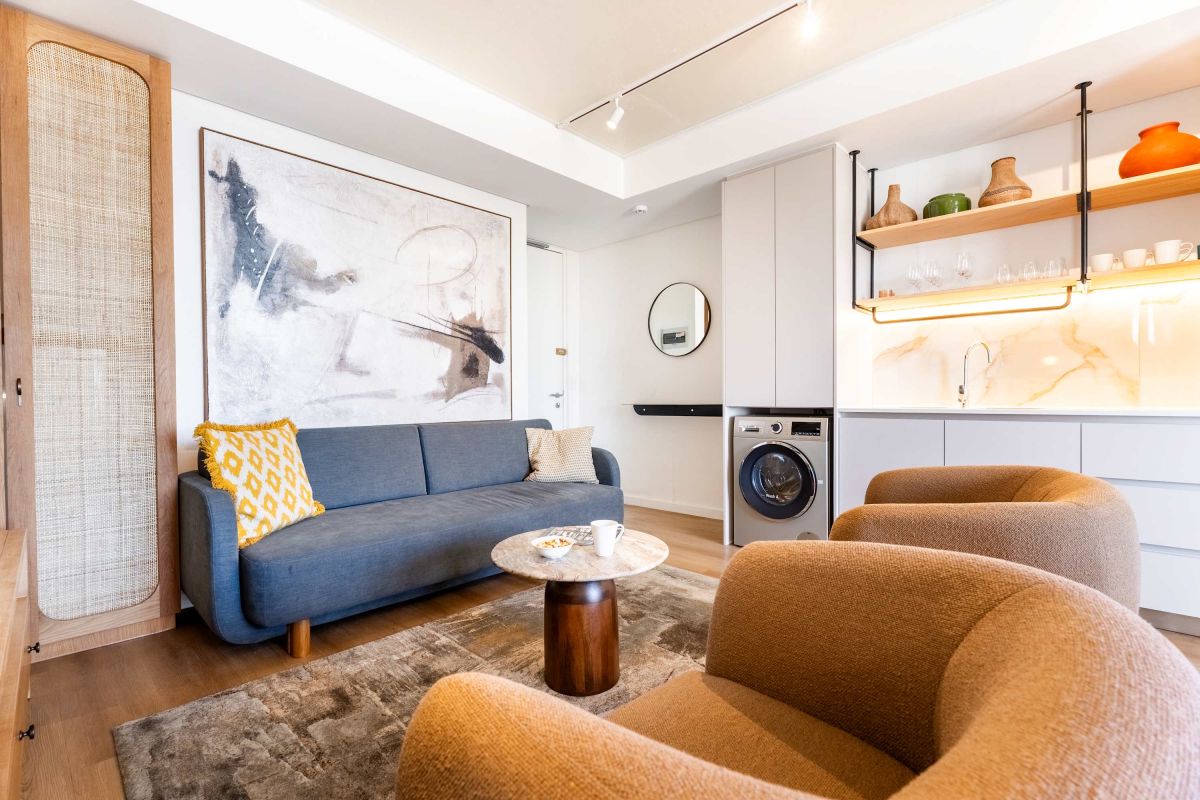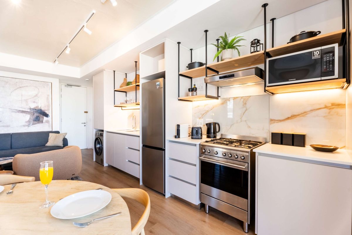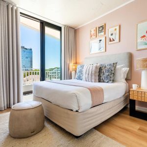 Beyond the apartment, guests enjoy access to a communal rooftop pool and entertainment deck, ideal for soaking up the sun or enjoying evening cocktails with panoramic views plus access to the communal yoga studio.