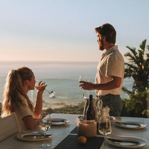 Outside, the villa opens onto a private pool deck with sun loungers and an alfresco dining area — ideal for soaking up the sun or enjoying long, lazy evenings under the stars. A fire pit with seating for four offers a perfect mountain-facing spot for sundowners, while the gym, with its ocean views, adds a touch of wellness to your stay.