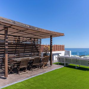 As you walk along the decked landing to the top terrace you are greeted with the most exquisite 180 degree views over the Atlantic. The roof terrace is large with a covered outdoor dining space to seat 8 guests. From the terrace, you will be able to enjoy watching the most exquisite sunsets.