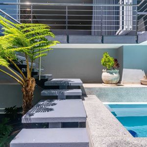 Each half of the Villa have been uniquely designed with the various levels all built around the central courtyard with a plunge pool. This allows for a group to enjoy the use of different spaces within the Villa and not necessarily have to be in the same living area or outdoor space simultaneously.