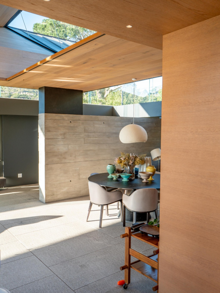 On the bedroom level, a fynbos garden integrates the mountain’s indigenous flora into the building itself, blurring the boundaries between nature and design. Each space has been carefully curated to highlight Cape Town’s natural splendour while offering modern comfort and style.