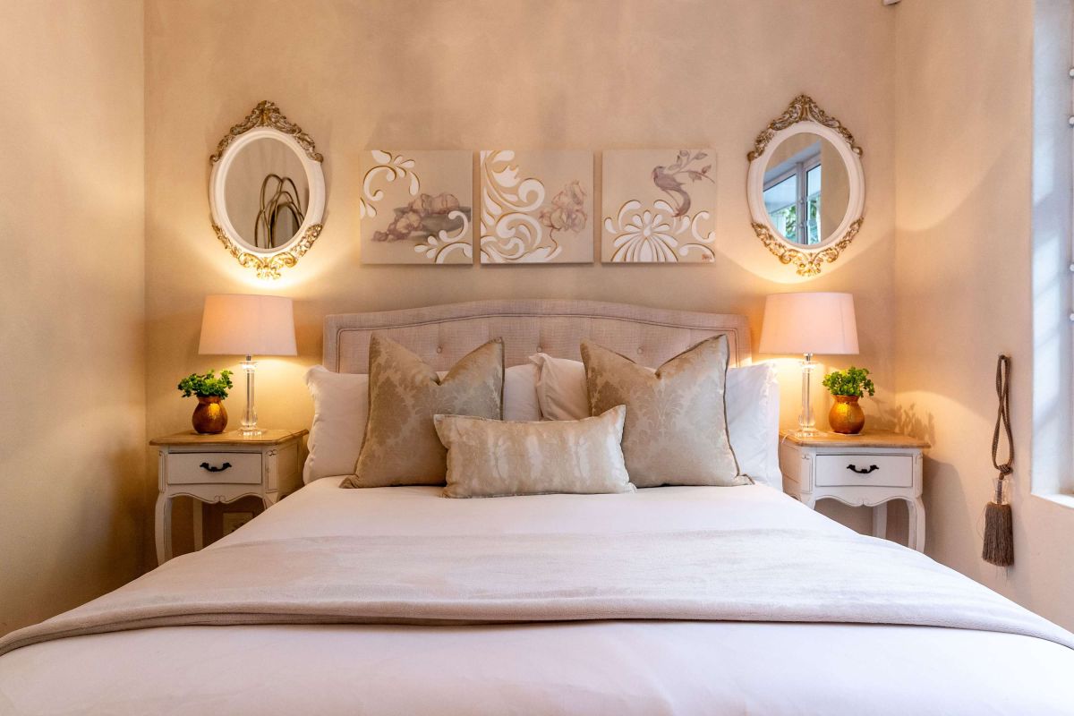• King-size bed with plush bedding