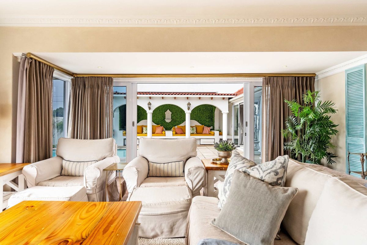 This beautiful villa is situated in a quiet cul-de-sac and is just a short drive or 15-minute walk from the palm-lined beach and laid-back cafés in Camps Bay.