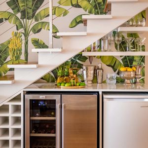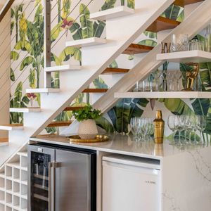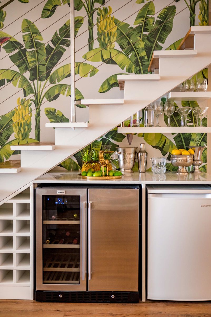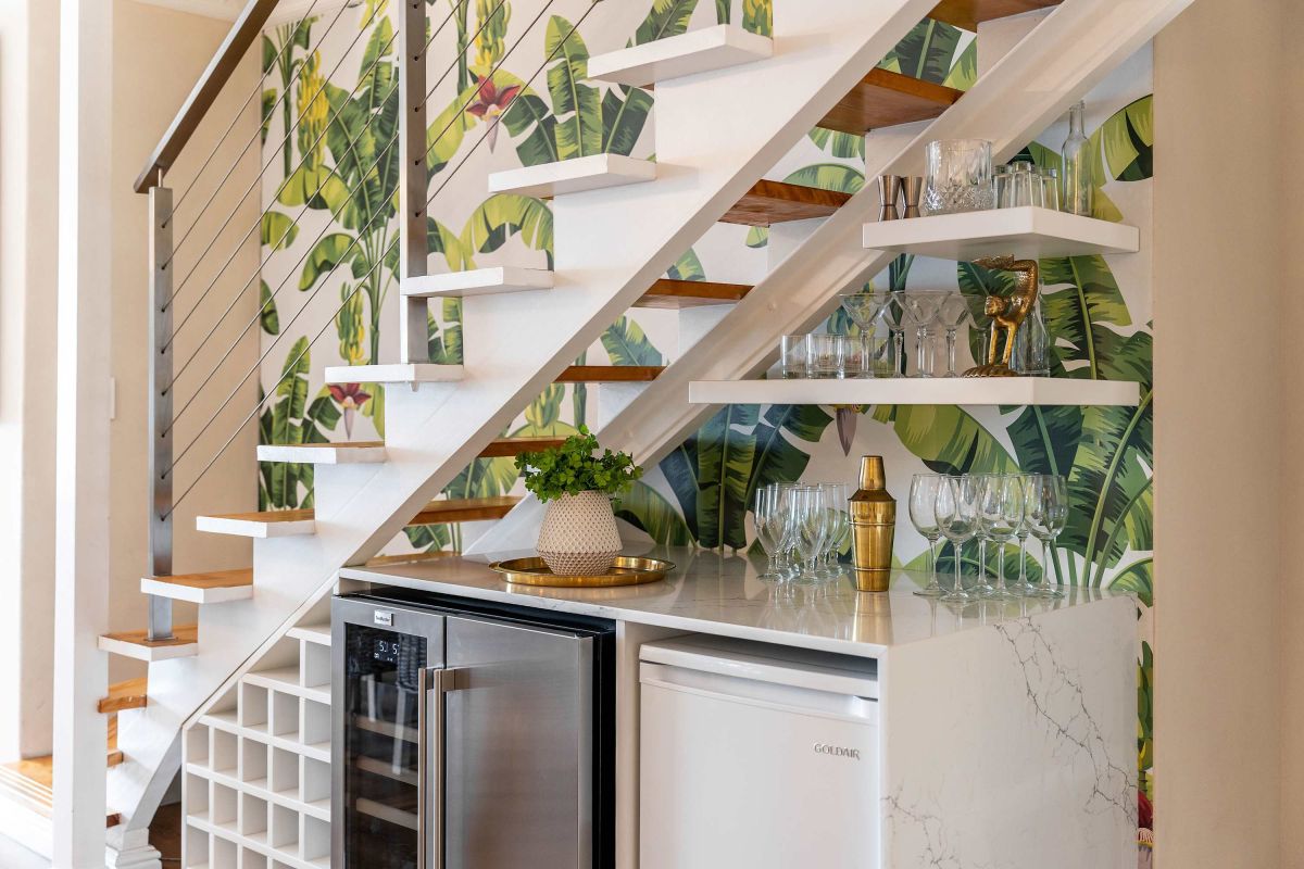 • Quaint bar under the stairs with wine fridge & mini freezer