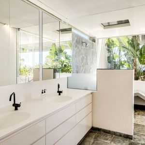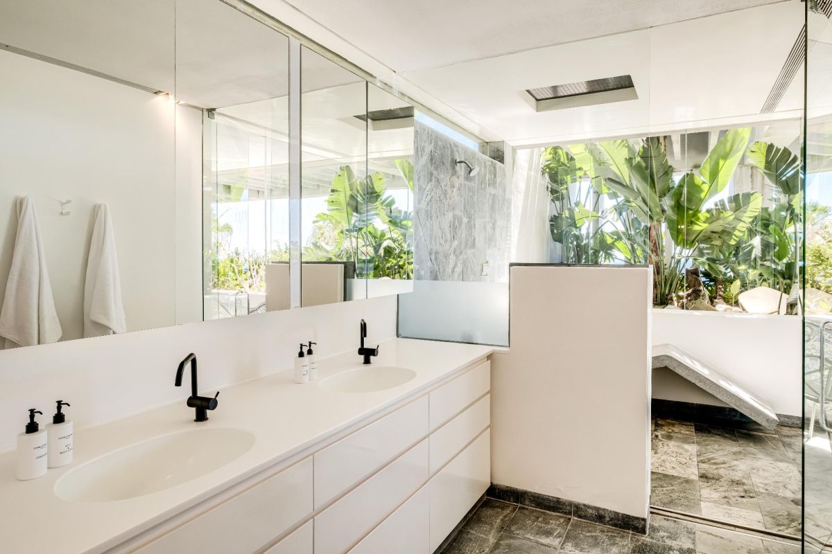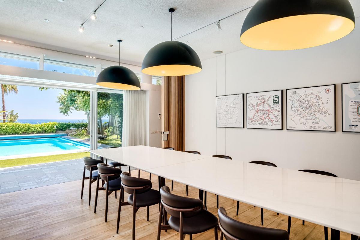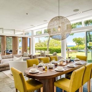Designed for groups and those seeking high‑end living, the villa offers an abundance of space and amenities. Multiple lounges, entertainment rooms, a private cinema, library, gym, and boardroom provide versatile areas for relaxation, work, and play. Many of these spaces open seamlessly onto the pool, upper decks, and outdoor dining terraces, ensuring every moment is framed by the surrounding beauty.