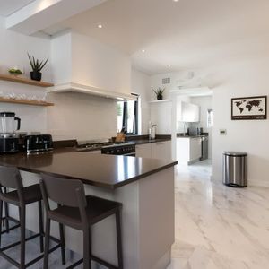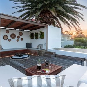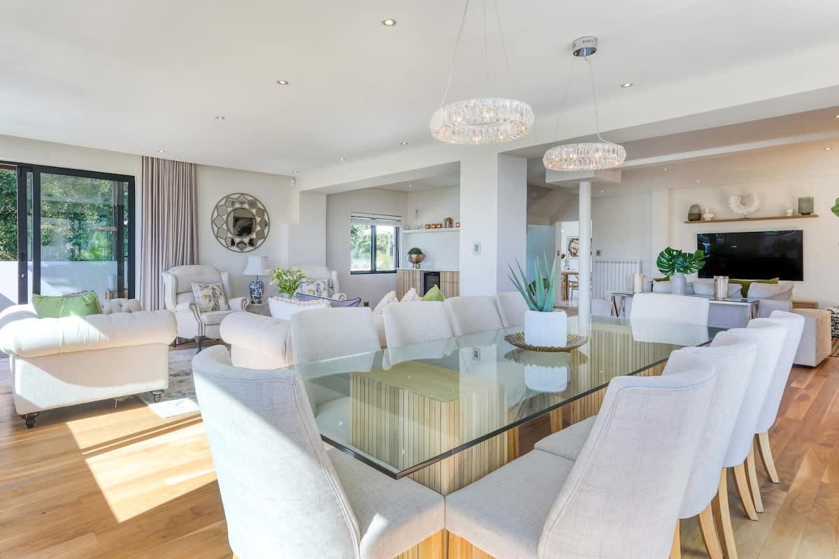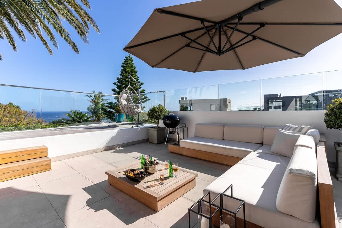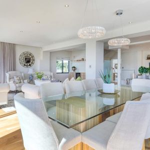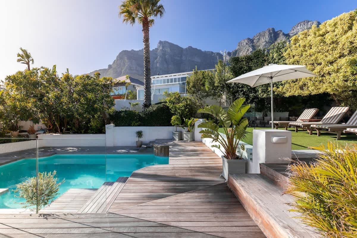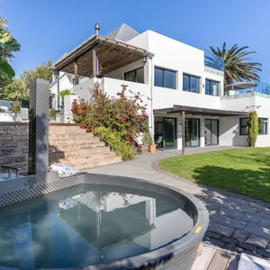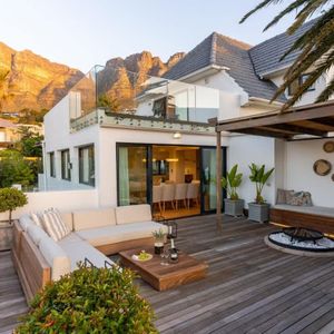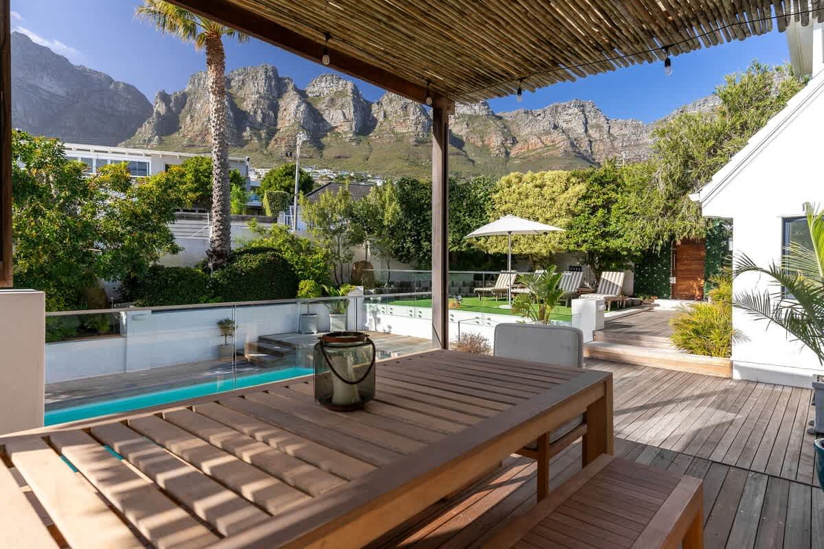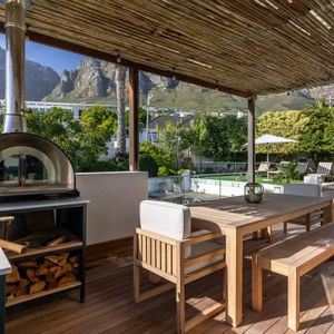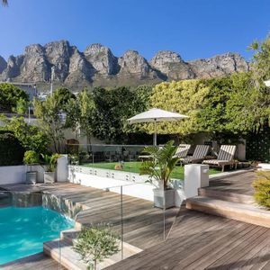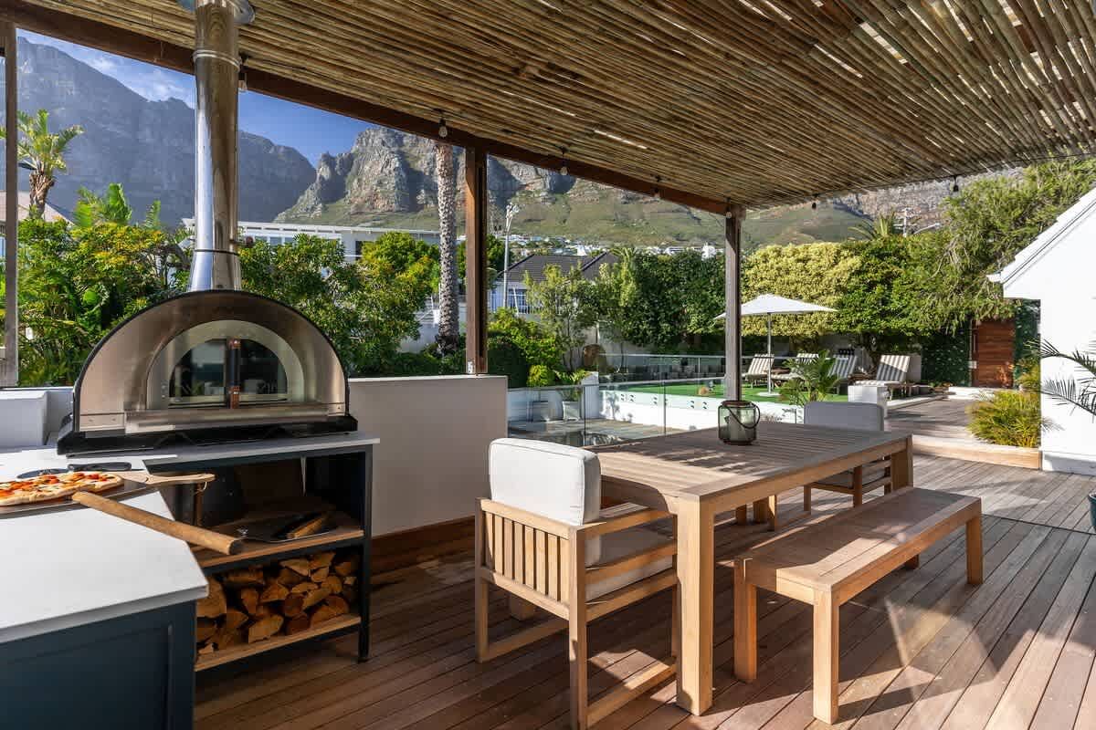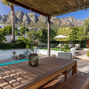 Step into this stylish five-bedroom, five-and-a-half-bathroom Mediterranean-inspired retreat, offering spacious and comfortable living and entertainment spaces. The property features a serene swimming pool, inviting firepit lounging decks, wood fired pizza oven and dining deck, outdoor wood fired hot tub and well-maintained gardens with stunning ocean and mountain views. Conveniently located just minutes away from Bakoven's secluded beaches, the lively Camps Bay beach and promenade, and Table Mountain hiking trails.