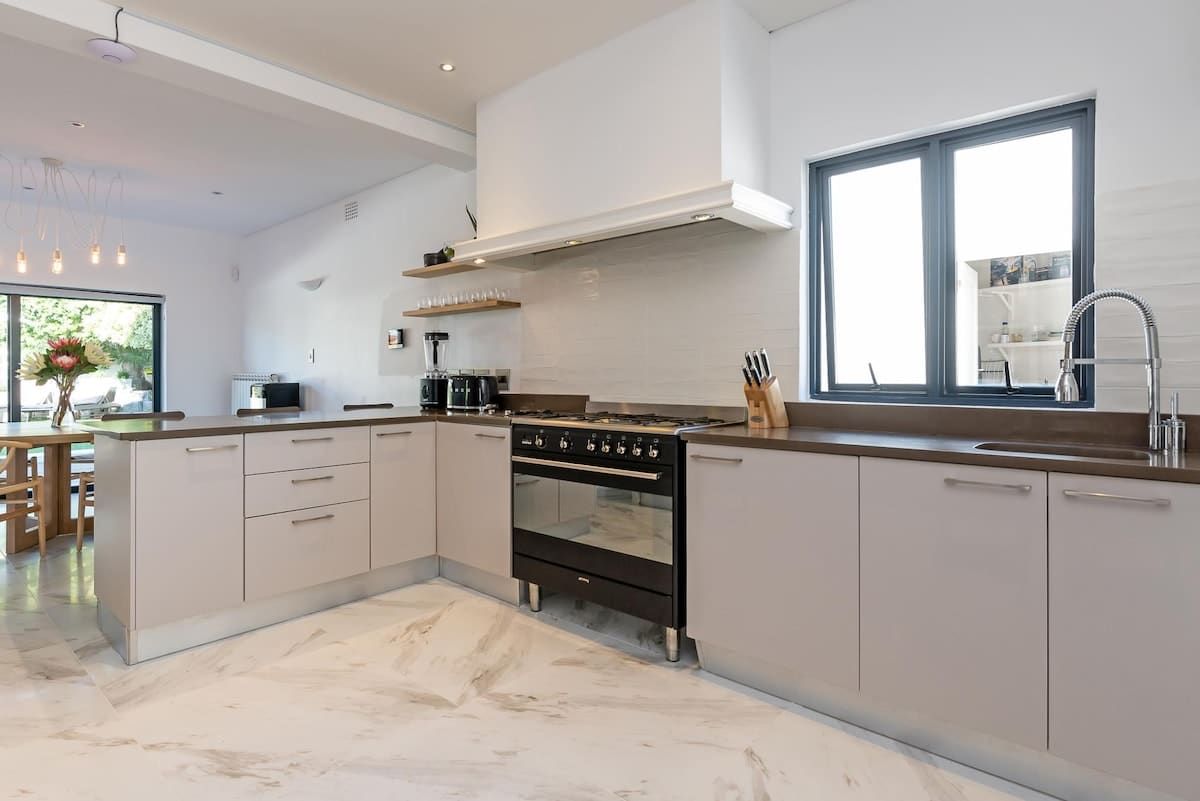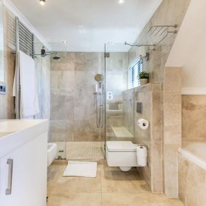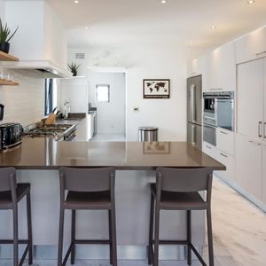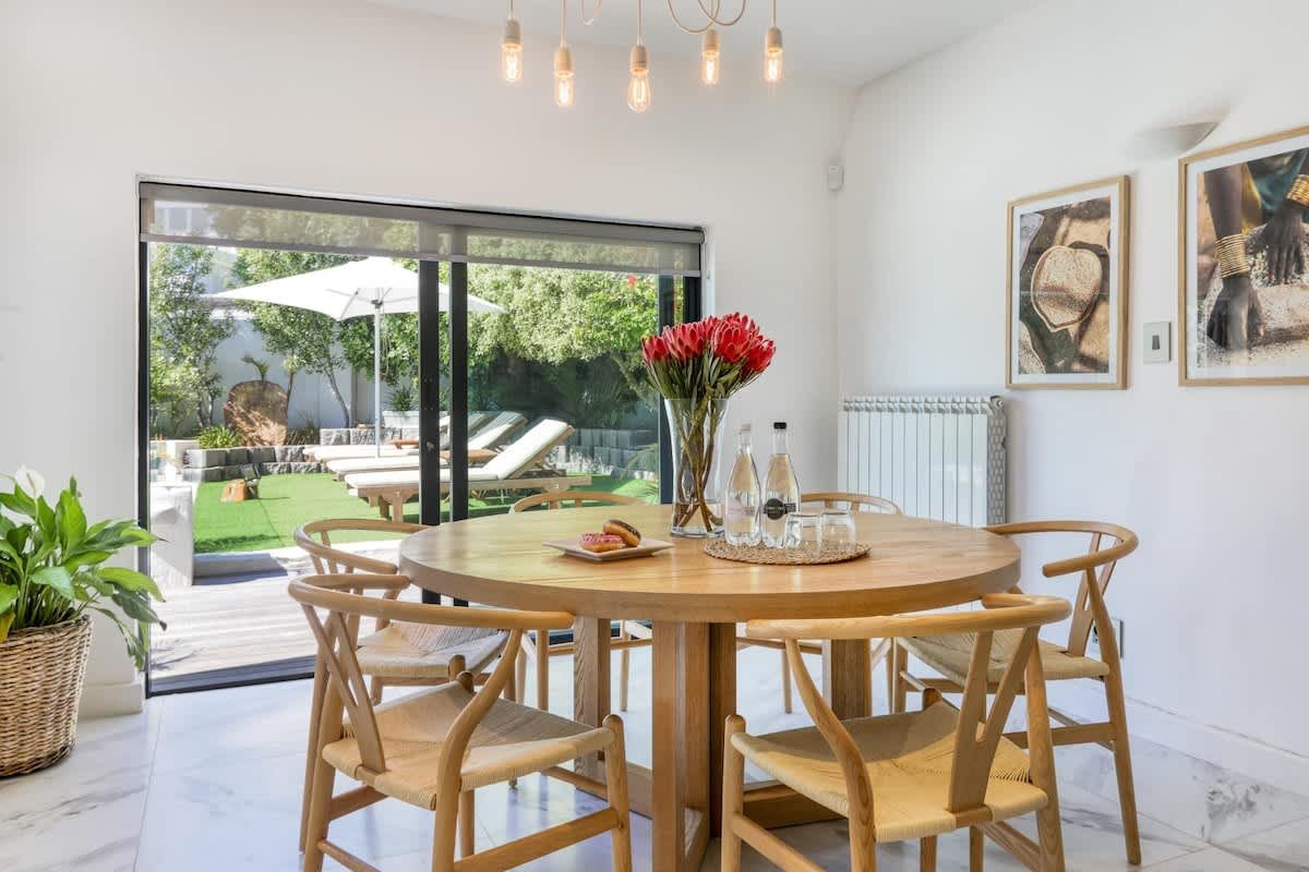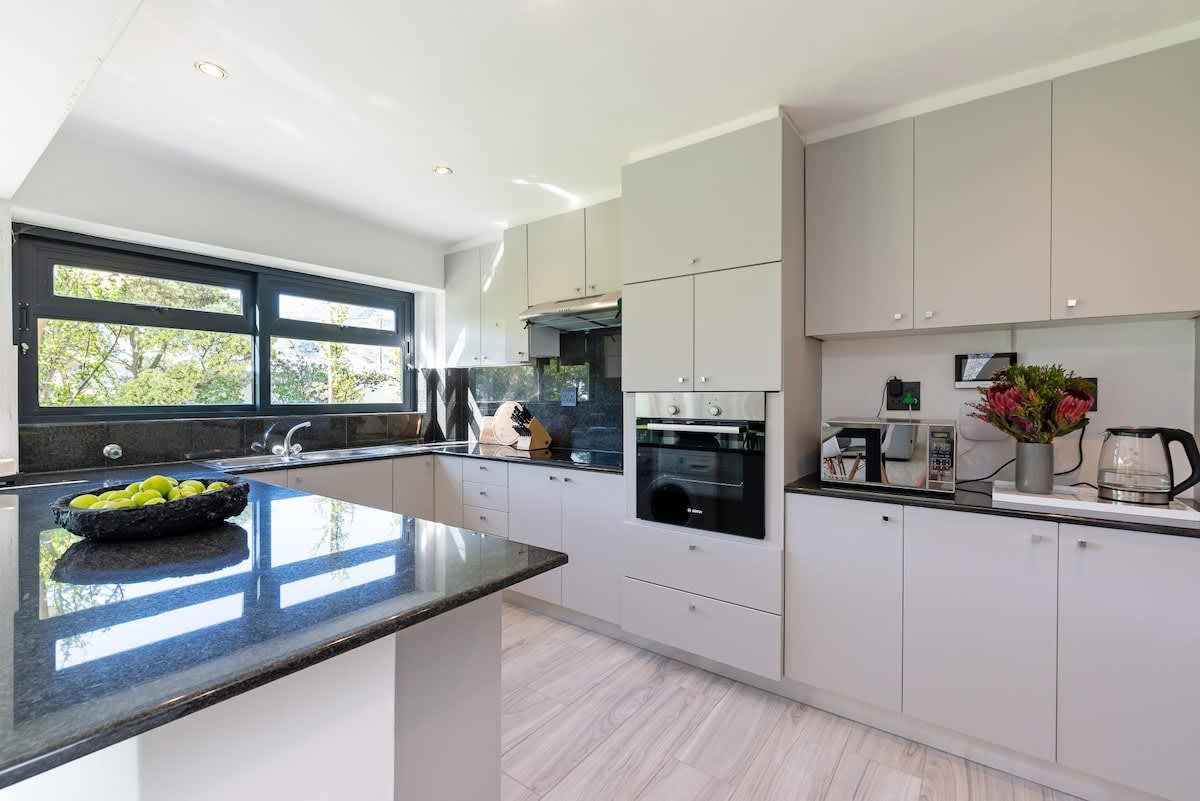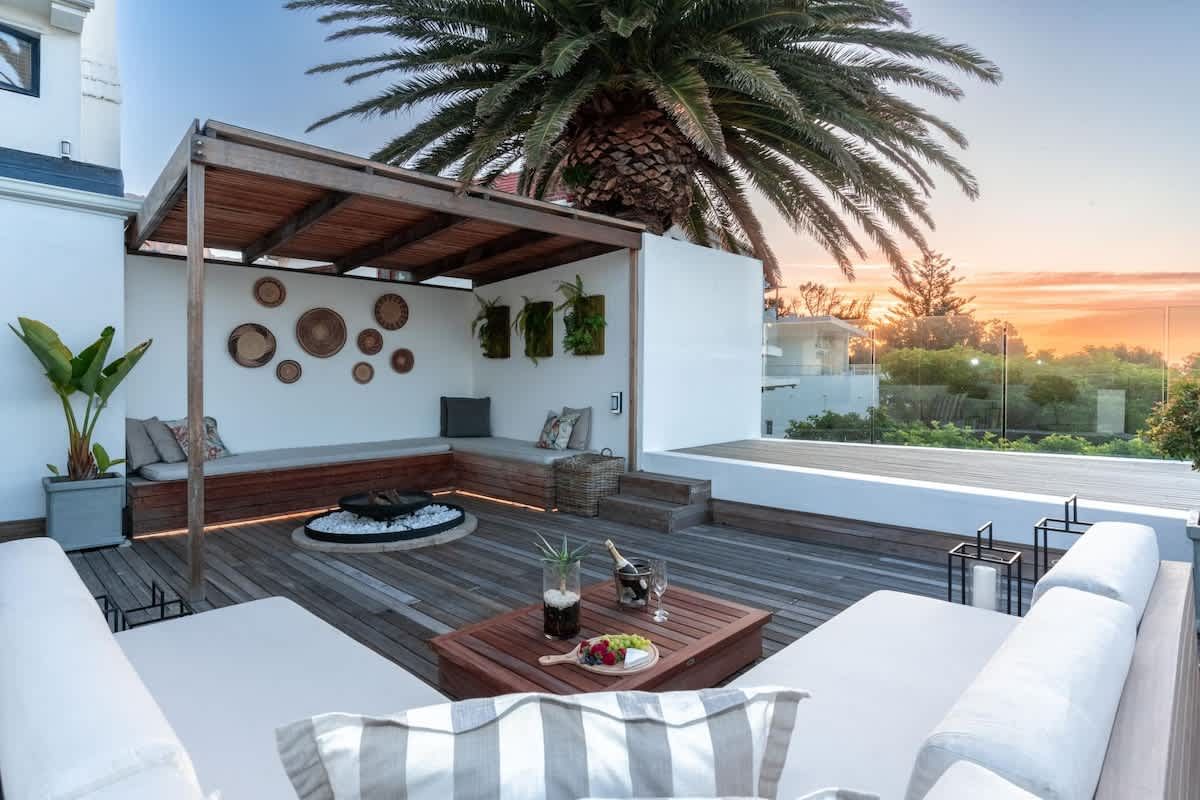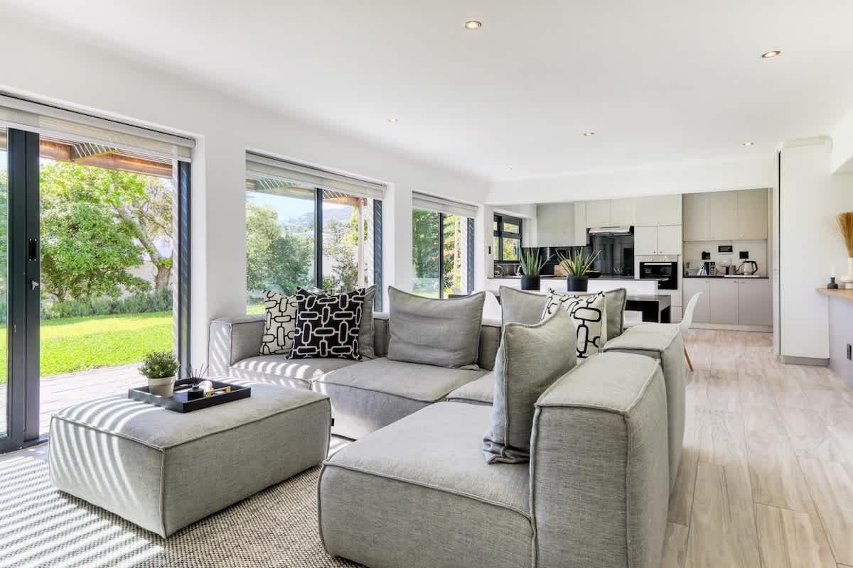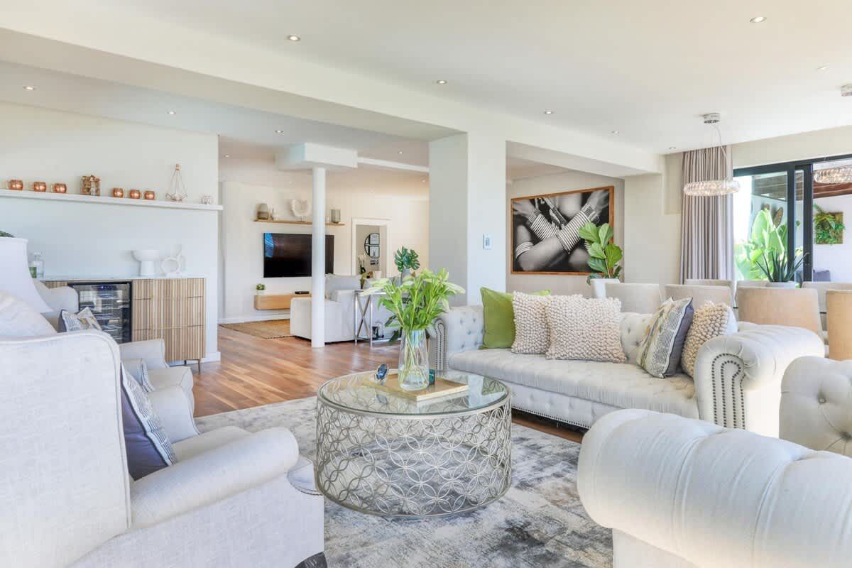 Step into this stylish five-bedroom, five-and-a-half-bathroom Mediterranean-inspired retreat, offering spacious and comfortable living and entertainment spaces. The property features a serene swimming pool, inviting firepit lounging decks, wood fired pizza oven and dining deck, outdoor wood fired hot tub and well-maintained gardens with stunning ocean and mountain views. Conveniently located just minutes away from Bakoven's secluded beaches, the lively Camps Bay beach and promenade, and Table Mountain hiking trails.