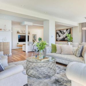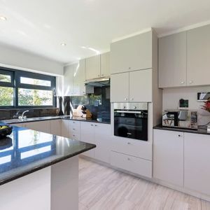 Additional features of this home include a borehole for grey water supply, a gas-powered central heating system and solar powered backup power system. It also boasts a modern security system with electric fencing, motion sensors, and a camera system with the option for 24/7 offsite monitoring. The property provides separate staff accommodation, a single garage, and two driveway parking spaces, with off-street parking available.
