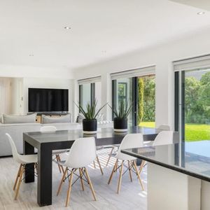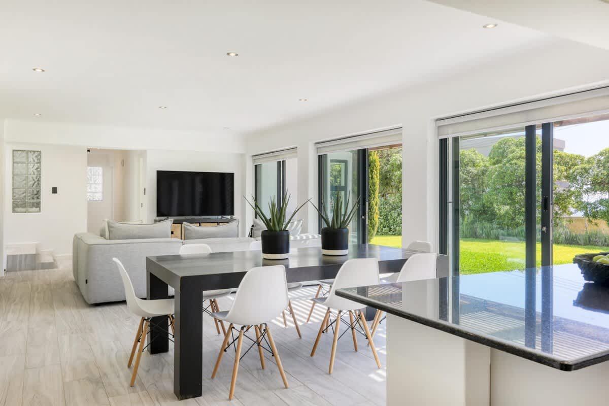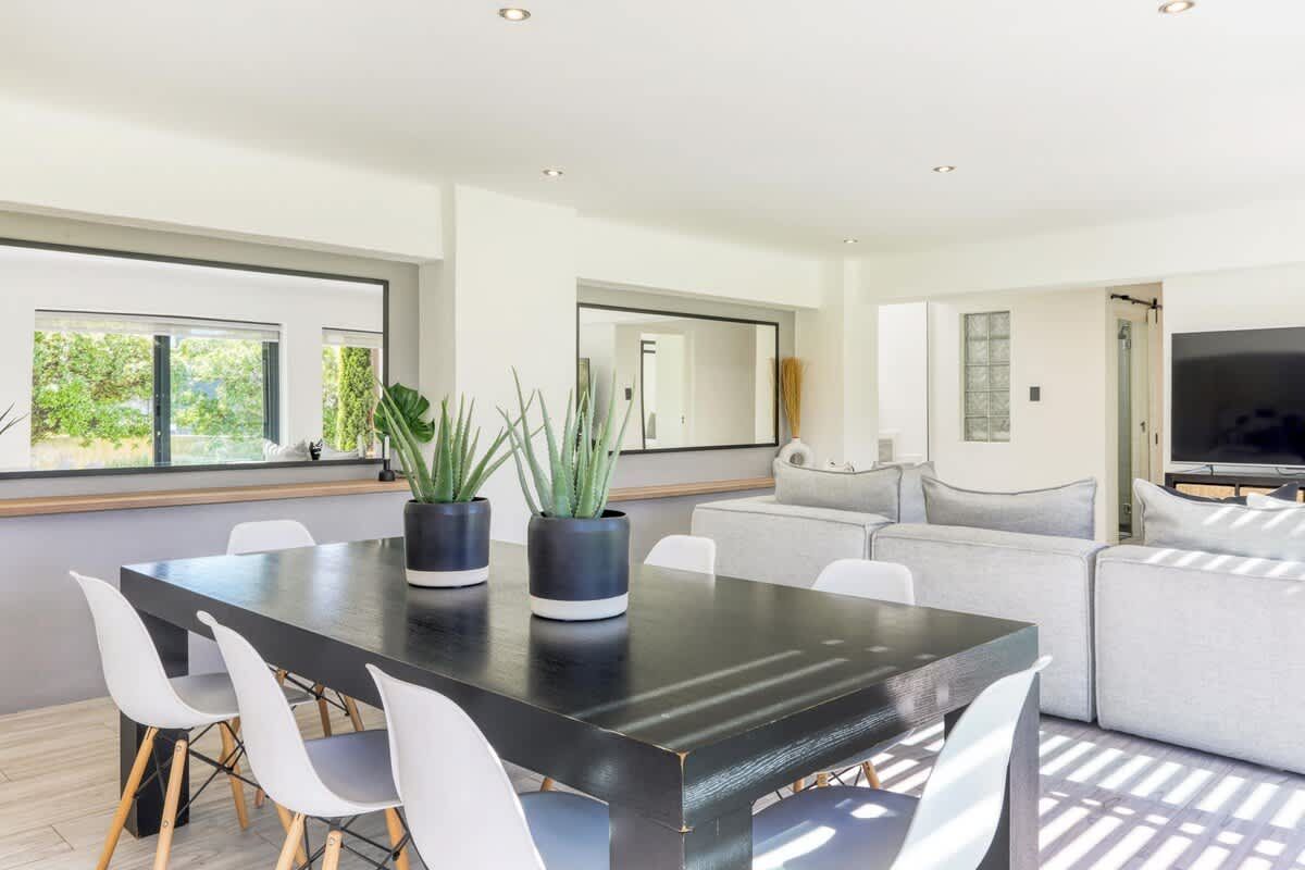 This tastefully furnished villa spans three levels and offers the option of dual living with a two-bedroom apartment on the lower level. The apartment includes a fully equipped kitchen and laundry, an eight-seater dining area, and a lounge with a 65" 4K TV, all leading out to a spacious manicured garden with sweeping mountain views.