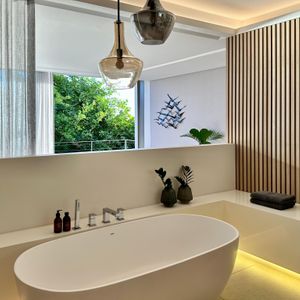 - En-suite standalone bathtub, walk-in shower and toilet