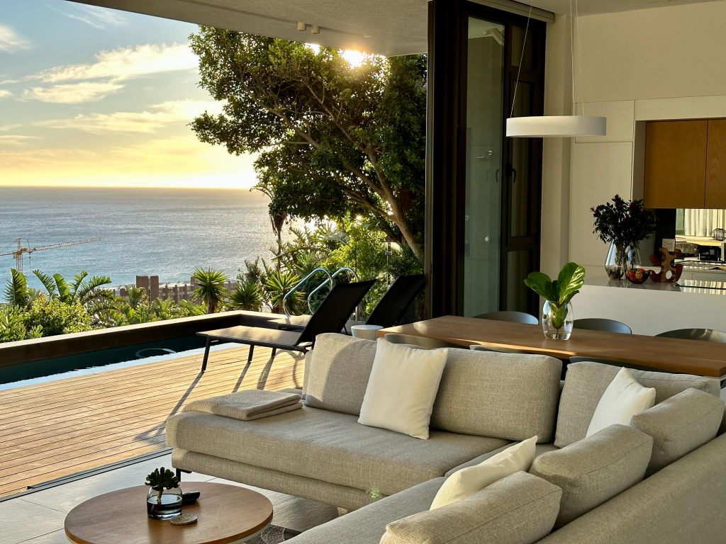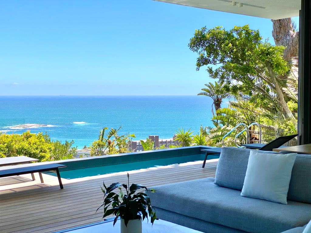 This 6 bedroom Majestic Escape is over 3 levels, commanding one of the most Instagram-worthy ocean, beach, nature reserve, and mountain views in Camps Bay, while still within 10 minutes walking distance to the beach.