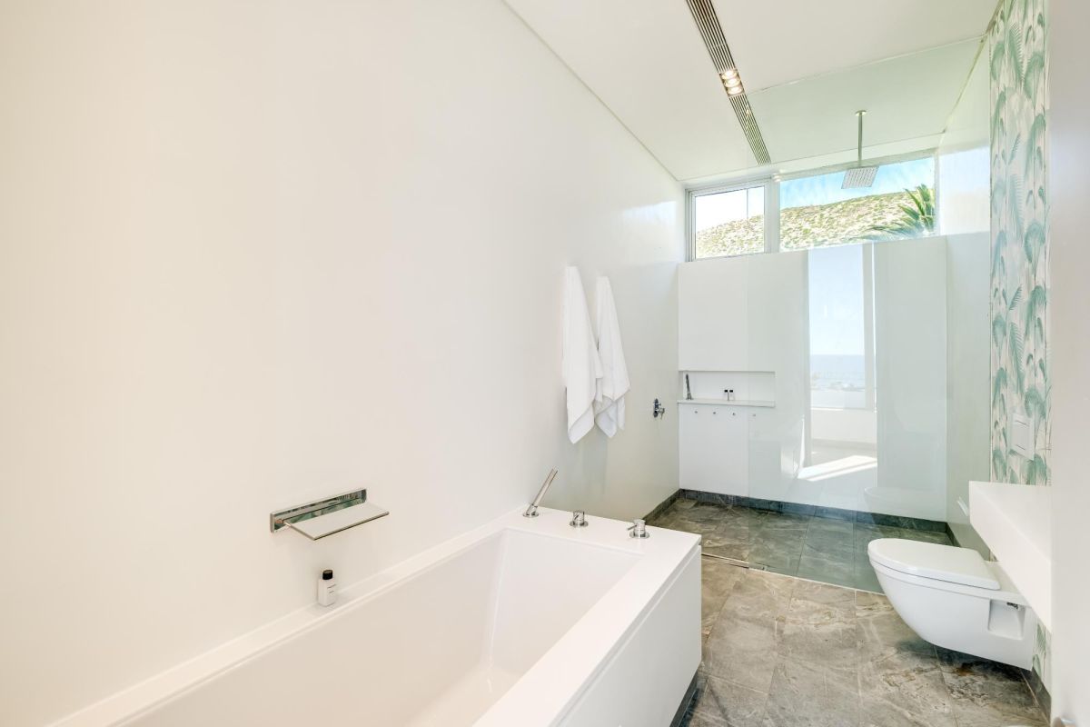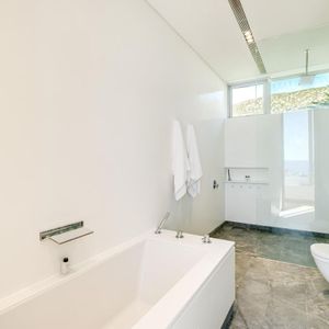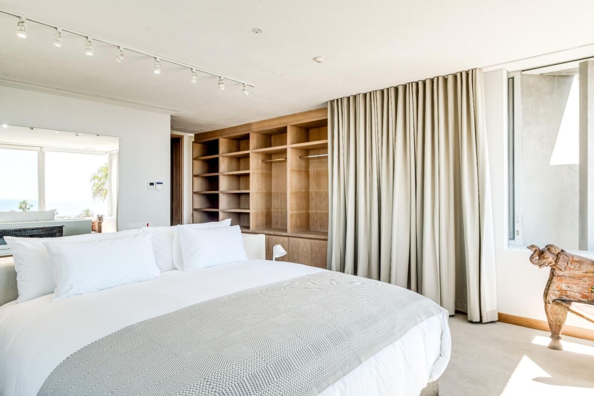 Located in the sought‑after suburb of Fresnaye, Nerine Manor is an elegant villa that blends plush interiors with serene sea and mountain views. The residence features four king‑size bedrooms, each equipped with air‑conditioning and positioned to capture the surrounding landscape. Three of the bedrooms open onto private balconies or garden terraces, enhancing the sense of space and tranquillity. These rooms share two well‑appointed bathrooms, each offering a combination of baths, showers, and single or double vanities.