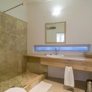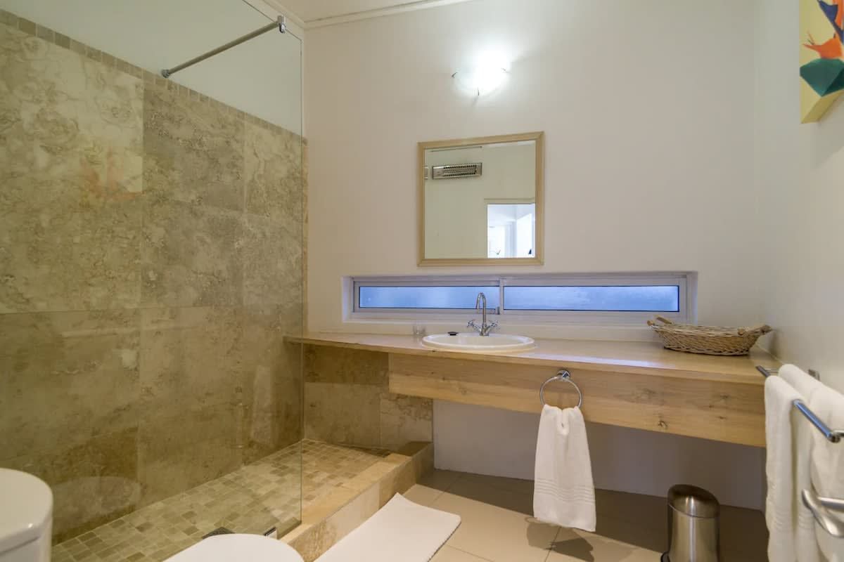 On the first floor, you'll find 3 large comfortable bedrooms (all with fans) and 3 bathrooms (2 of which are en-suite). Each bedroom has glass sliding doors opening onto the terrace with views of the Atlantic Ocean.
