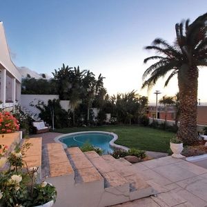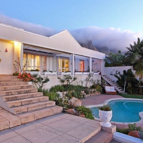 The garden is sheltered and private with a large swimming pool. It is situated above and within close walking distance to the secluded Bakoven beaches and also the vibey Camps Bay beachfront.