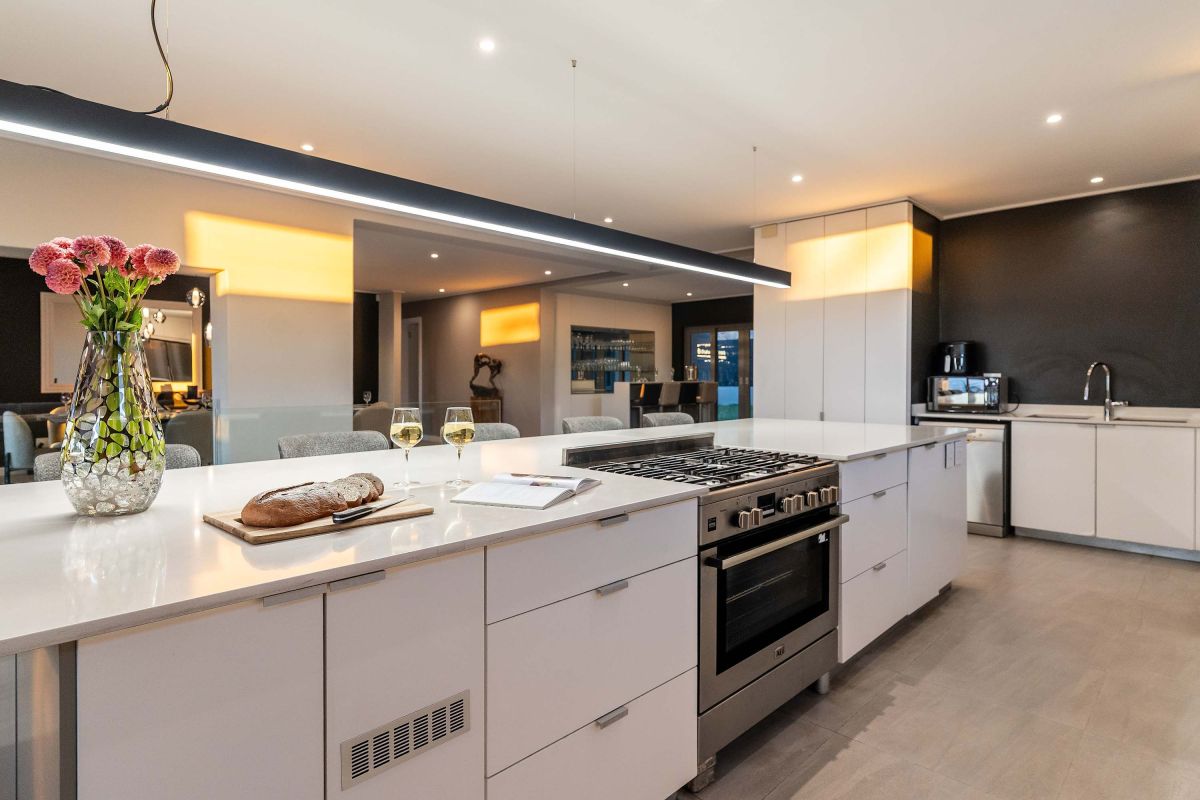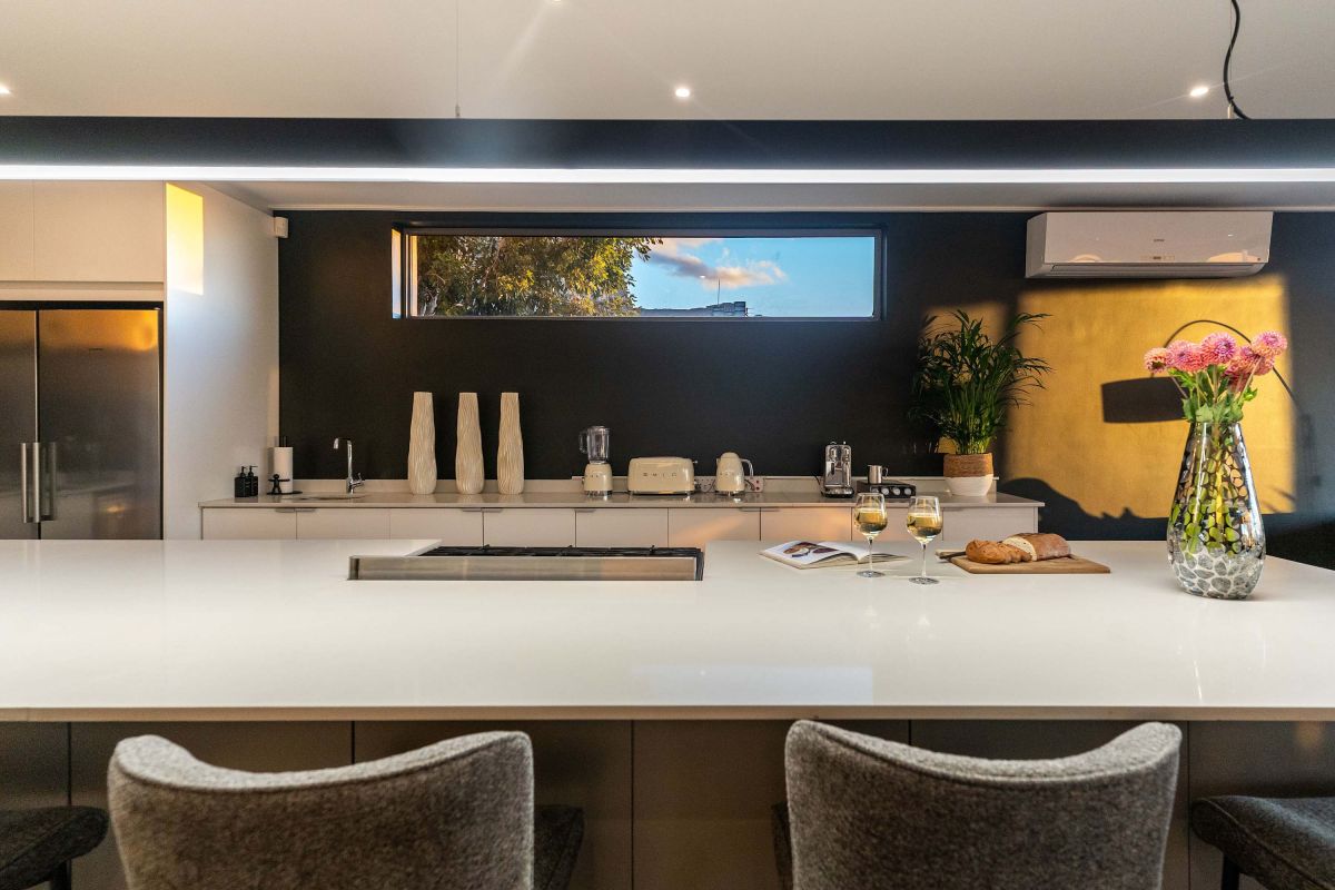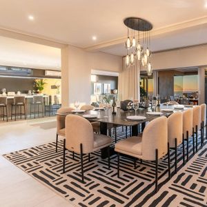 Inside, the villa’s open-plan layout creates a warm and welcoming atmosphere for families and groups. The fully equipped kitchen with breakfast bar makes casual dining a breeze, while the elegant dining area and outdoor tables are ideal for shared meals. Two lounges with comfy seating and TVs provide plenty of space for everyone to unwind, whether you’re watching a movie, or simply soaking in the views.