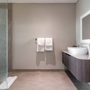 • Open-plan en-suite bathroom with bath, shower and single vanity