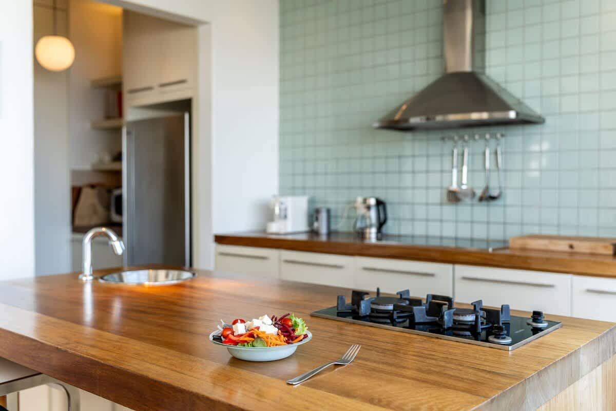 Fully equipped open plan kitchen