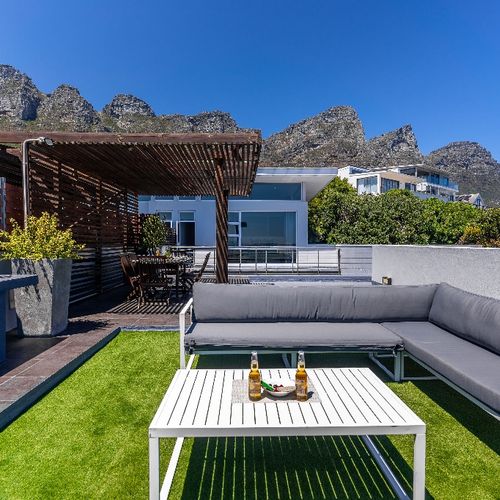 The villa features secure off-street parking in a garage and is fully secure with an alarm. A short drive will take you to the bustling palm-lined beachfront of Camps Bay with its plethora of beach bars, cafés, restaurants, and shops. The Table Mountain Cableway and the V&A Waterfront are just a 15-minute drive away.