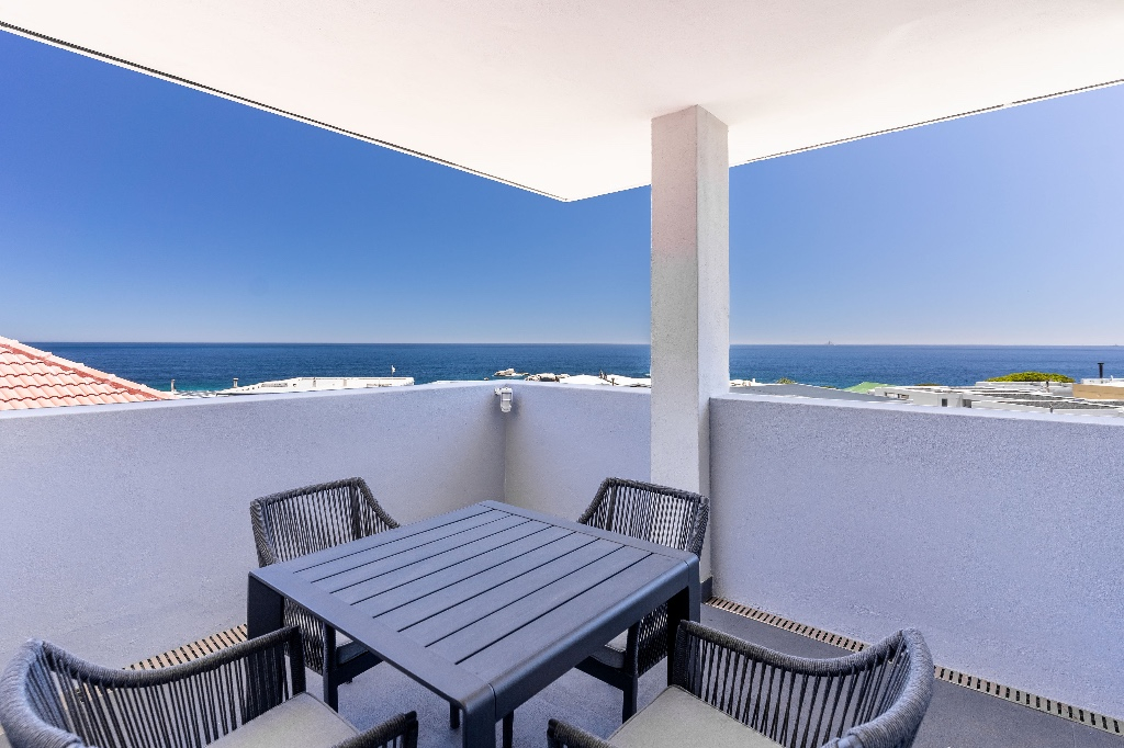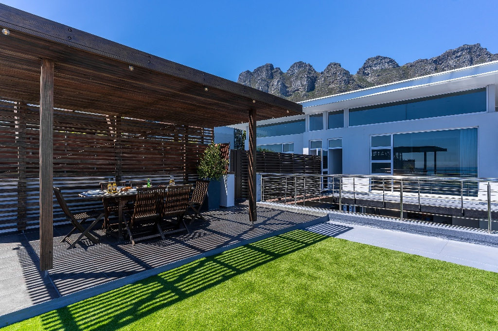 The third level of the villa is a stylish rooftop deck with an outdoor dining table for six shaded by a wooden pergola and a built-in gas barbecue. Panoramic views of the Twelve Apostles Mountains and the Atlantic Ocean make an idyllic backdrop for outdoor entertaining.