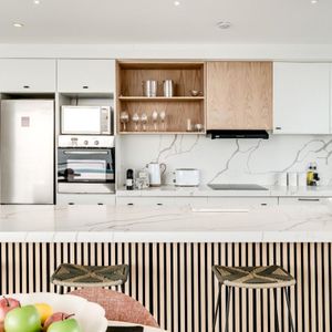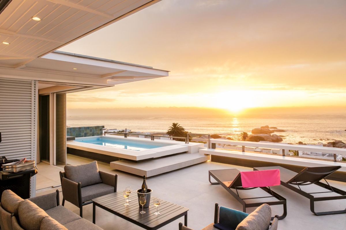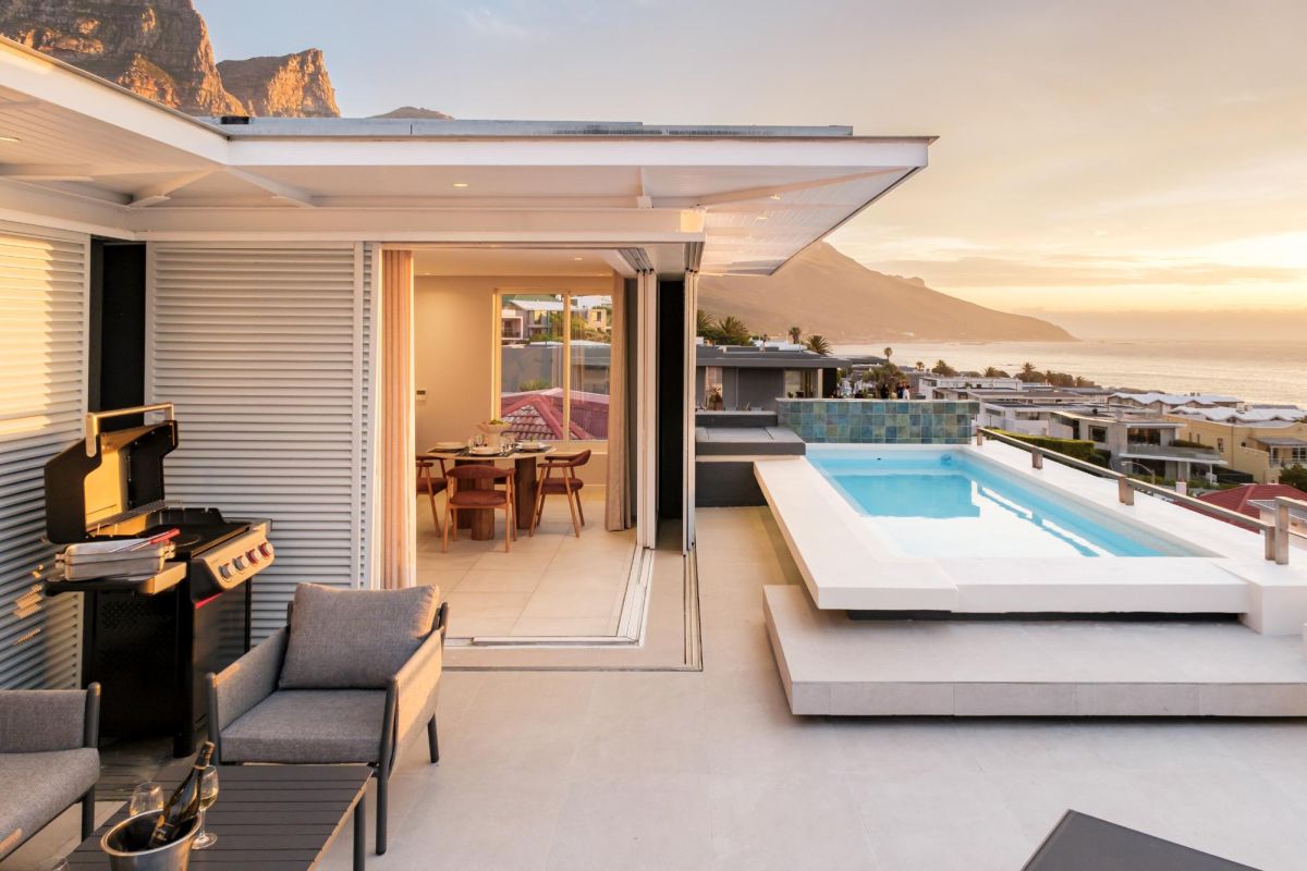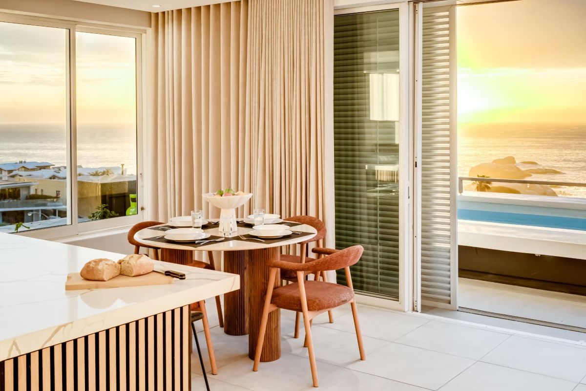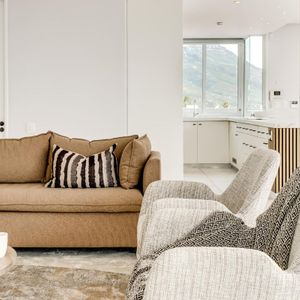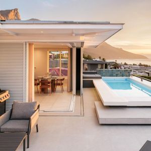Sapphire Bay offers a luxurious escape along scenic Victoria Road, mere steps from Bakoven Beach and the Camps Bay Promenade. Every room captures breathtaking sea and mountain views, merging serene living with striking natural beauty. The main bedroom features a king-size bed, air conditioning, TV, and a spacious ensuite with bath, shower, and double vanity. The second bedroom includes adaptable twin beds, an ensuite, and captivating views. An open-plan living and dining area combines comfort and elegance, with a gas fireplace, TV, air conditioning, and a private balcony. The sleek kitchen boasts an electric hob, Nespresso machine, dishwasher, and separate washer/dryer. Outdoors, a private pool, sun loungers, and gas BBQ invite relaxation under Cape Town’s skies. Added amenities like an alarm system and portable WiFi/TV backup ensure a seamless stay. Sapphire Bay is an ideal sanctuary—balancing tranquillity with direct access to the vibrancy and charm of Camps Bay.