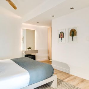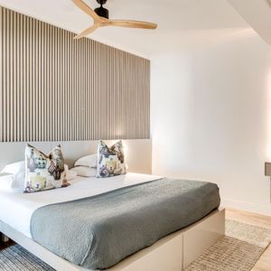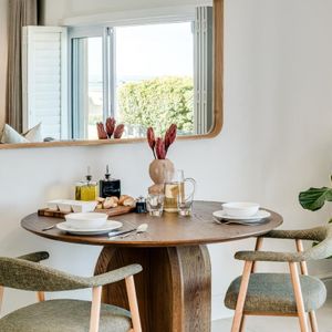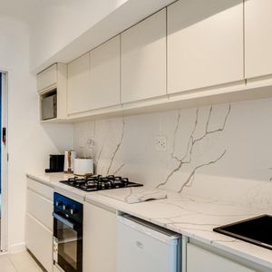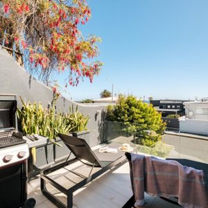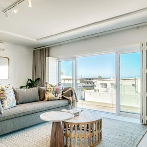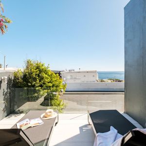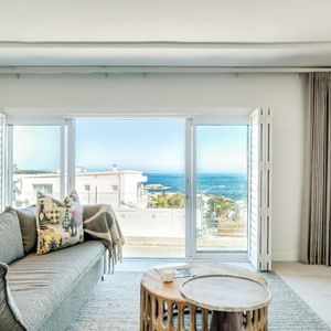 Sapphire by the sea is a serene retreat in the heart of Camps Bay—one of Cape Town’s most iconic seaside suburbs. This thoughtfully designed apartment features a tranquil bedroom with a king-size bed, ceiling fan, and dedicated workspace, perfect for restful nights or remote workdays. The modern ensuite bathroom includes a sleek shower and single vanity. An open plan living and dining area invites relaxation, complete with air conditioning, a TV, and a Juliette balcony showcasing calming sea views. The compact kitchen is equipped with an electric hob and Nespresso machine—ideal for light meals and morning brews. Outside, sun loungers offer a quiet corner to unwind with a book. Just steps from Bakoven Beach and the scenic coastal road, the suite provides effortless access to nearby cafés, beaches, and Table Mountain. Whether you're exploring the city or soaking in seaside tranquillity, Sapphire by the sea is a perfect Cape Town base.