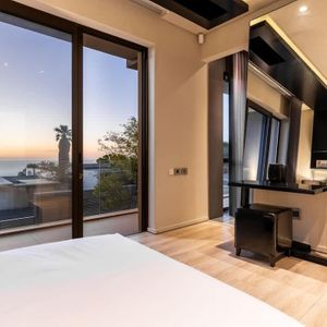 Step outside to discover the epitome of alfresco living, with a terrace adorned with chic outdoor lounge furniture, a separate wind-free BBQ area complete with a gas BBQ, and a sparkling swimming pool framed by panoramic views of the mountains and sea.