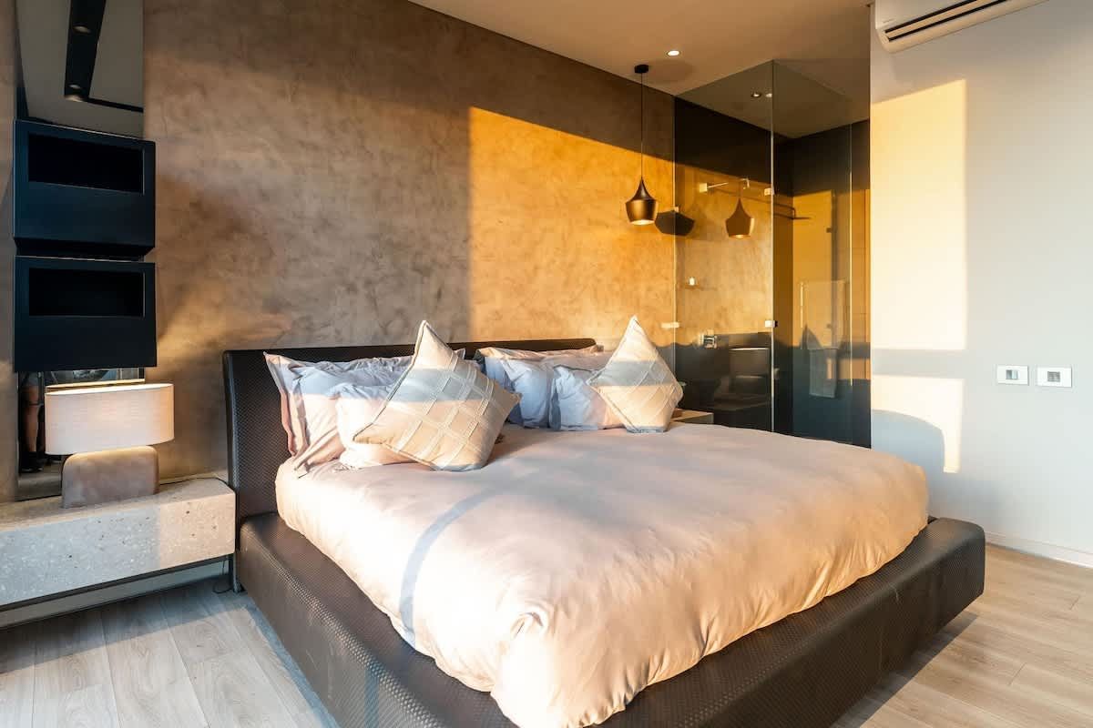 Ascend to the top level to find the master suite, a sanctuary of indulgence boasting a king-size bed, en-suite bathroom with a walk-in shower and extra-large bathtub, a spacious walk-in closet, and a private balcony offering mesmerizing ocean views. Three additional bedrooms on this level offer queen-size beds and en-suite bathrooms.