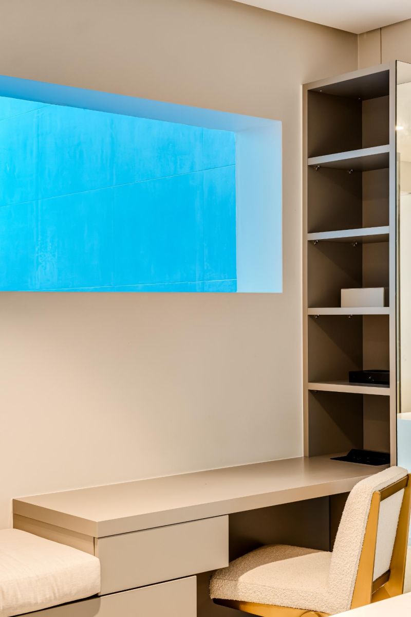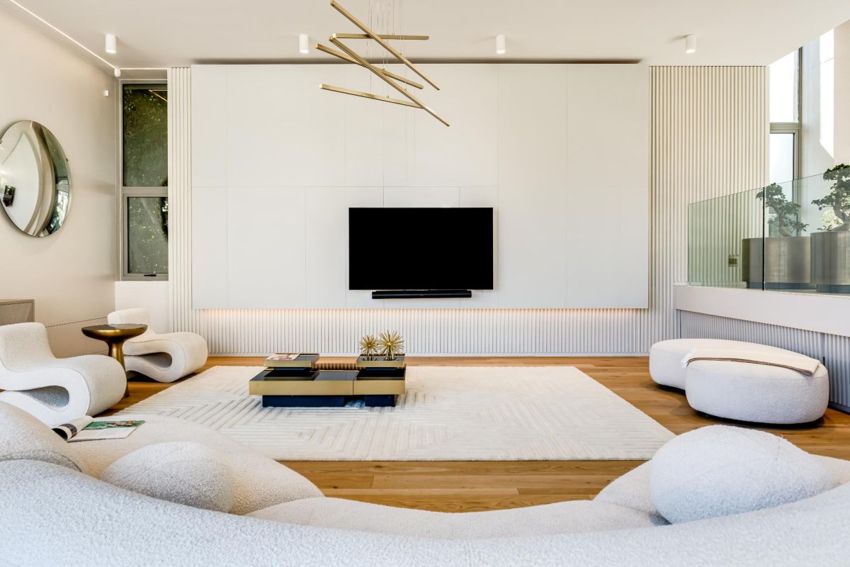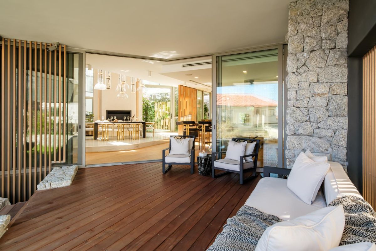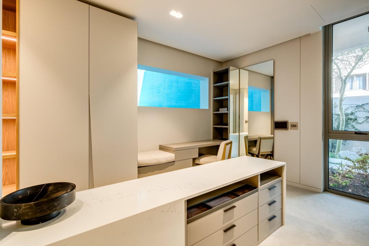 The villa’s open plan living and dining area is designed to embrace its stunning surroundings, with large windows framing spectacular sea views. A gas fireplace adds warmth to the space, while the fully equipped kitchen, complete with a Nespresso machine and dishwasher, caters to your culinary needs. Step outside to a private garden surrounding a sparkling pool—ideal for relaxation—and an outdoor BBQ area perfect for alfresco dining.