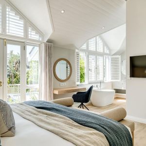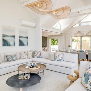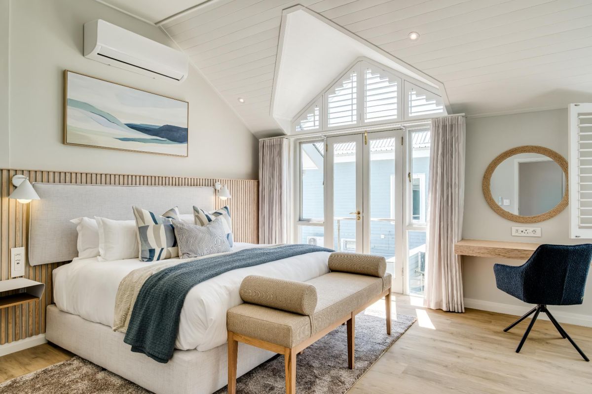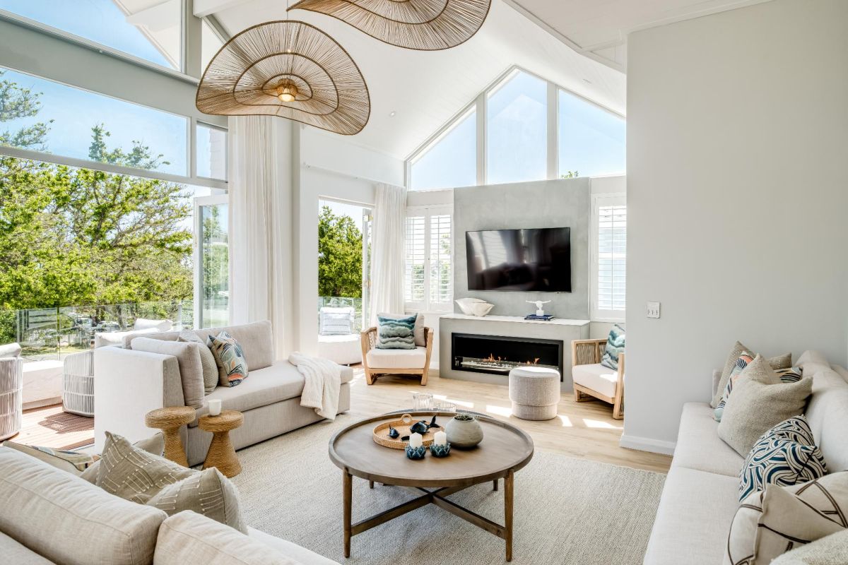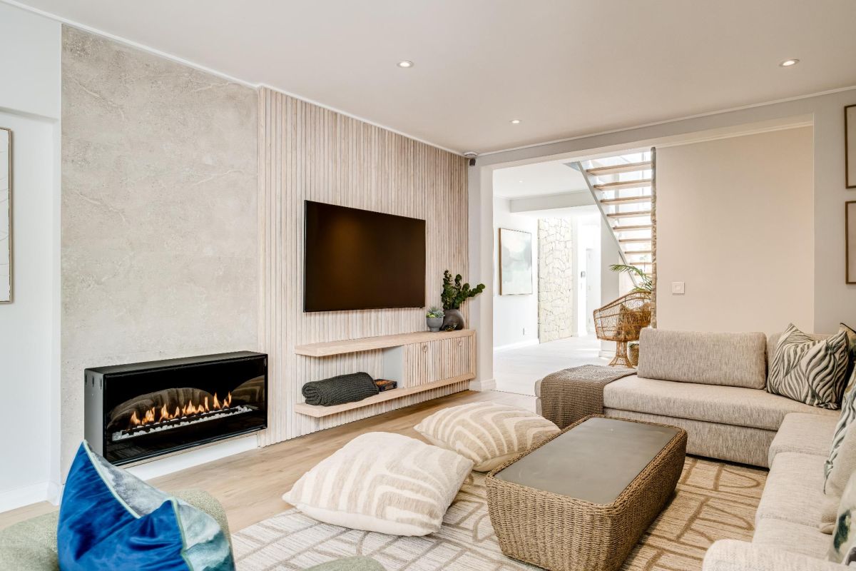 Just a short stroll from Camps Bay Beach and the vibrant Promenade, Seven Crest offers a tranquil retreat framed by Cape Town’s iconic natural beauty. Sunlight streams through soaring double-volume windows, casting a warm glow across timber finishes and ocean-inspired hues that mirror the surrounding landscape.