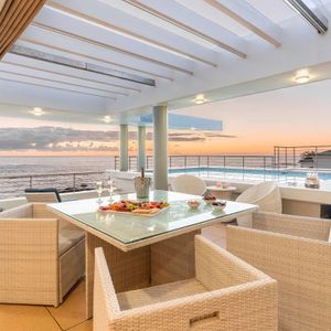 Altogether, Sunset Azure Villa features seven bedrooms, multiple entertainment spaces, two pools, and expansive terraces across three levels—each designed to maximise the breathtaking views of the Atlantic Ocean and the Twelve Apostles mountain range. Just 500 meters from Camps Bay’s vibrant promenade of world-class restaurants, cafés, cocktail bars, and boutique shops, the manor offers the perfect balance of seclusion and accessibility.