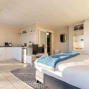 The Studio unit, located on the lower level, is a charming and self-contained retreat ideal for those wanting a bit of privacy from the group. With its serene sleeping area, compact kitchenette, and Smart TV, it offers a peaceful escape with uninterrupted ocean views and the soothing sound of the surf.