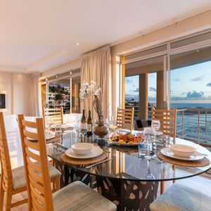 Perched along Cape Town’s iconic Victoria Road in the prestigious enclave of Bakoven, Sunset Azure Villa is a rare and luxurious 7-bedroom property that captures the essence of coastal living. With sweeping, uninterrupted views of the Atlantic Ocean and direct access to the secluded beauty of Bali Beach, this multi-level property offers a unique blend of privacy, elegance, and versatility—perfect for extended families, or discerning guests.