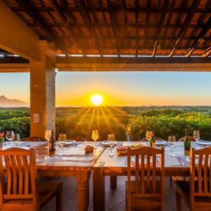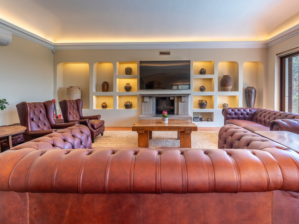 As evening falls, retreat to the outdoor entertainment area, complete with ambient lighting and plush seating by the fireside and braai. Cook your food on an open flame or opt for a convenient gas braai option. Relax after that in the outdoor area of the barn villa, in a wood-fired hot tub under the stars. This sanctuary offers the perfect blend of intimacy and indulgence