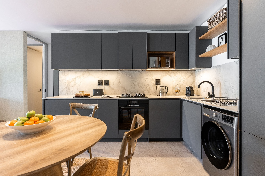 Whether you're whipping up a quick breakfast or preparing a full dinner, the sleek, fully equipped kitchen has everything you need. Share meals and moments around the chic dining table, or step outside and discover the local culinary scene just a short stroll away.