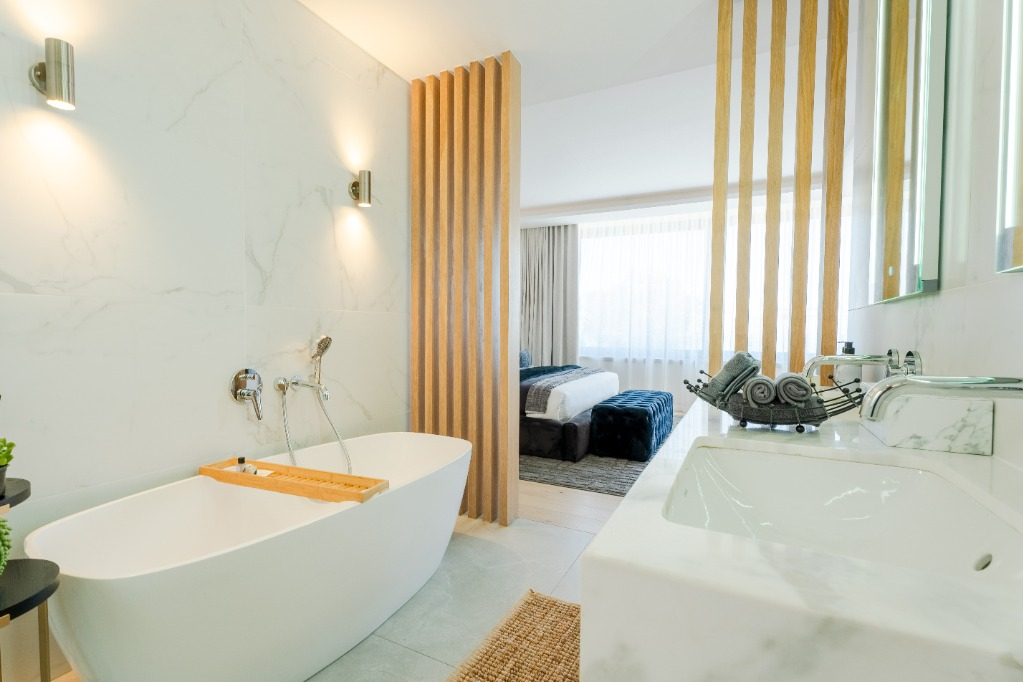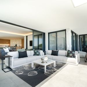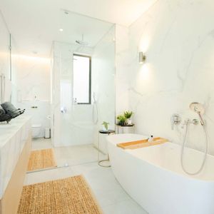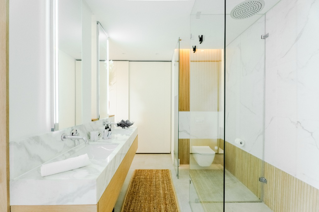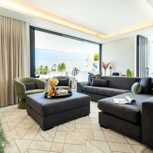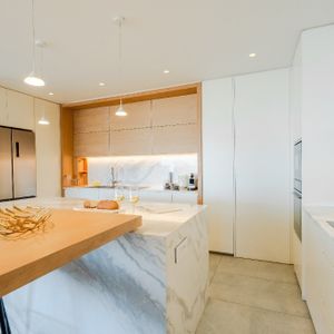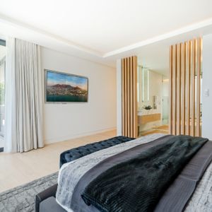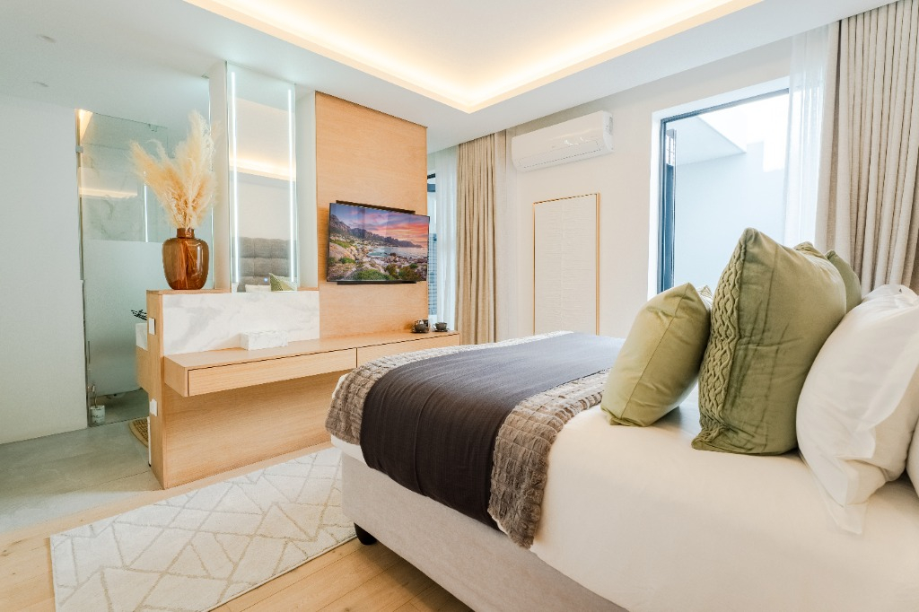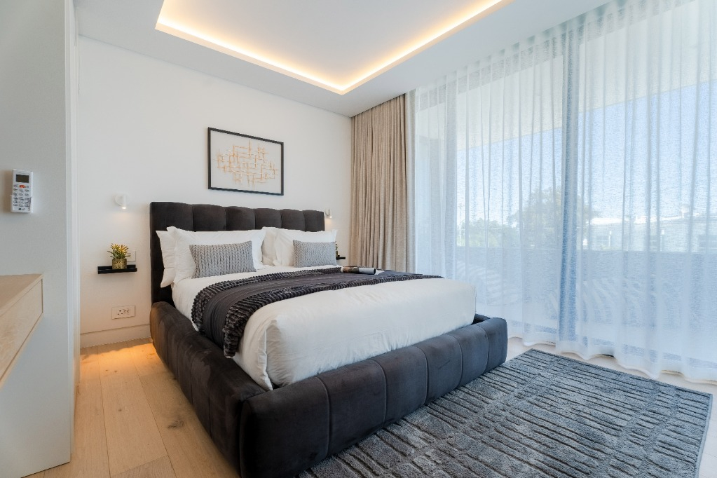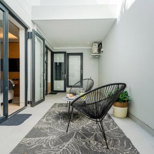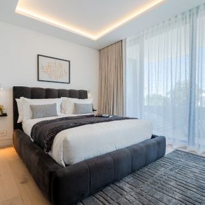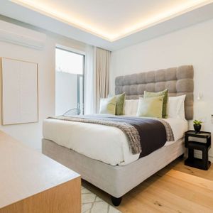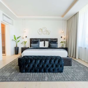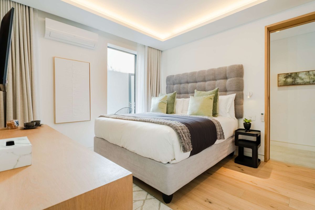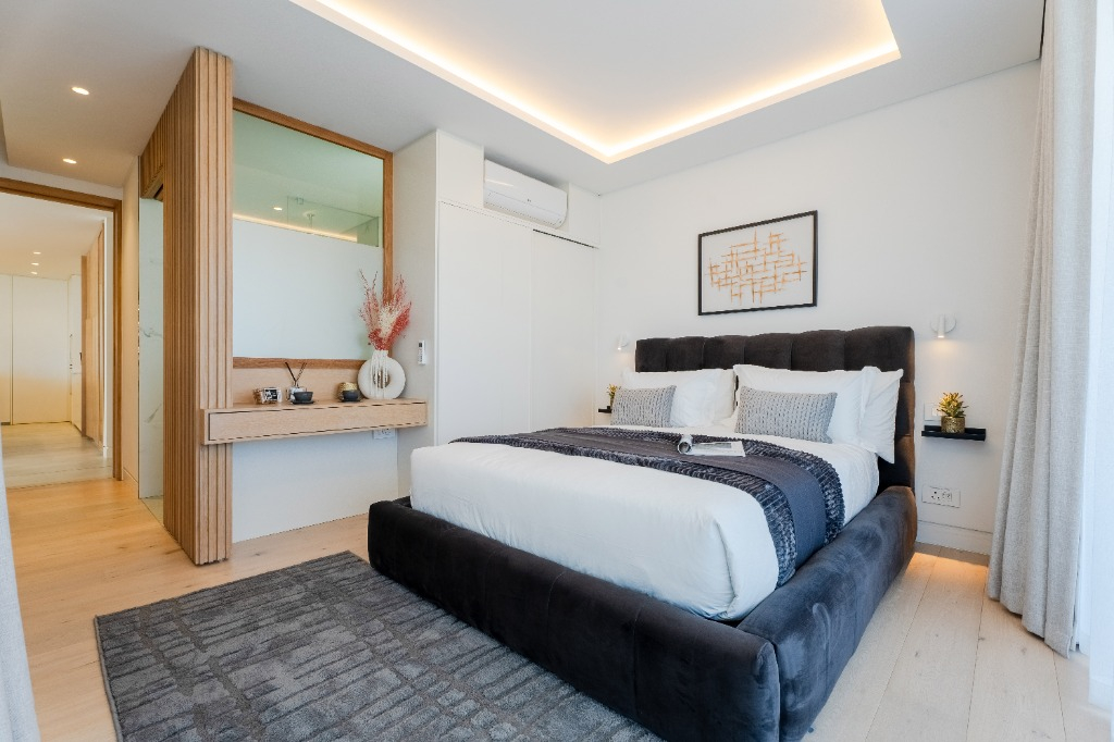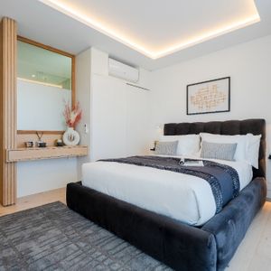 Designed with discerning travellers in mind, the apartment features three spacious en-suite bedrooms, each with elegant décor. The master and second bedrooms open onto the balcony, while the third offers a tranquil private courtyard - perfect for quiet moments. The fully equipped kitchen includes premium appliances, making it ideal for both short and extended stays.
