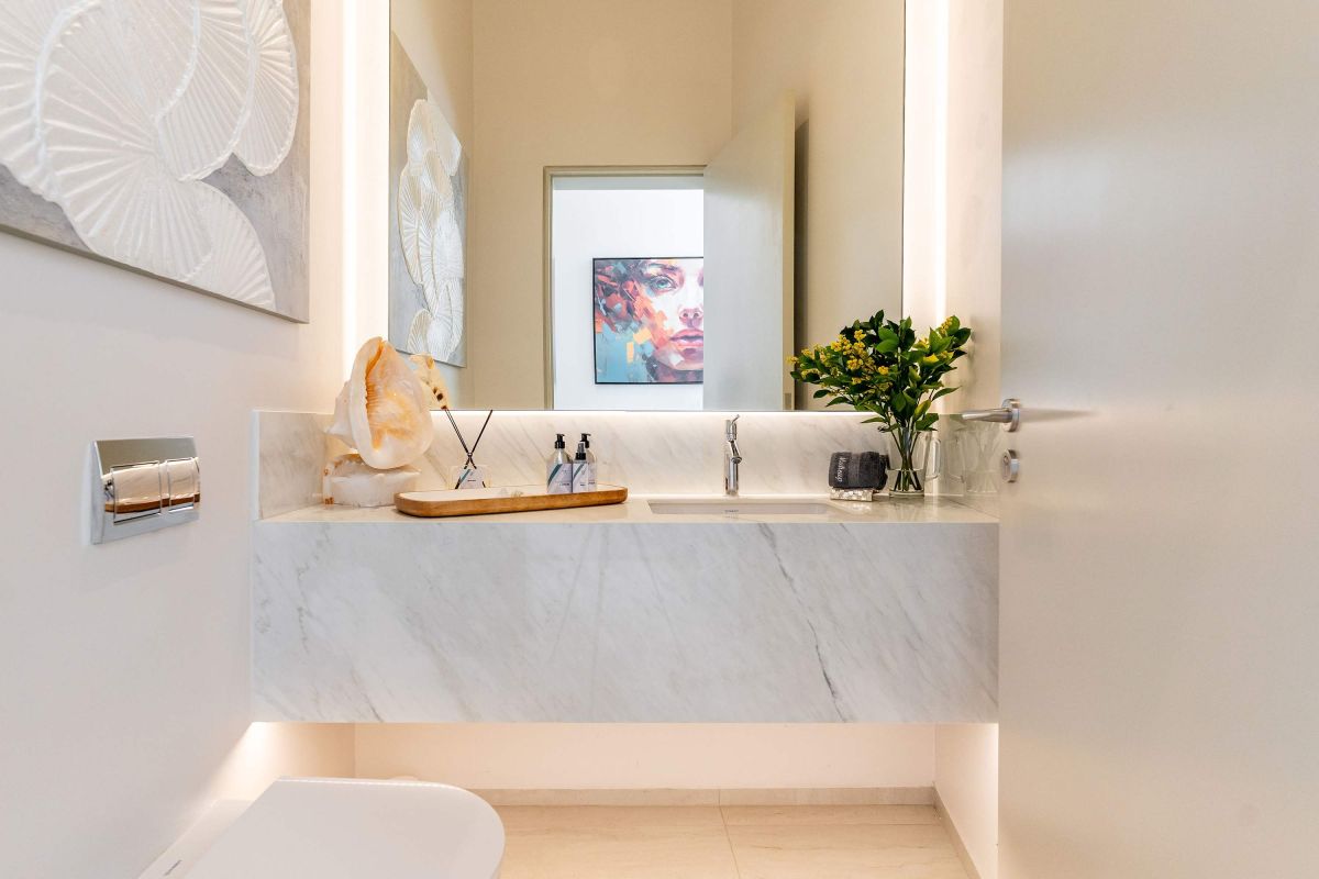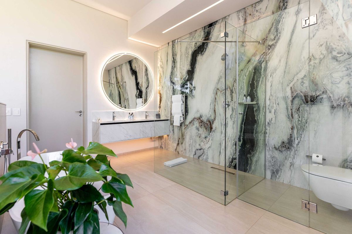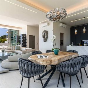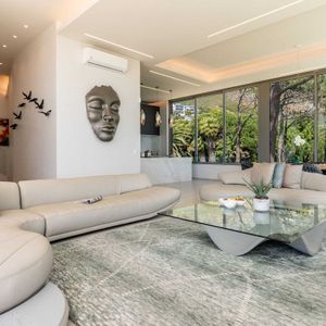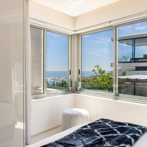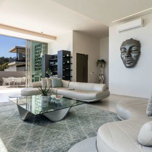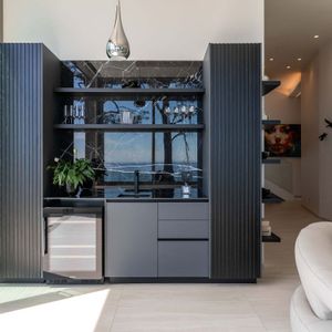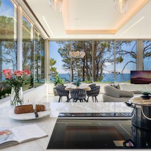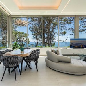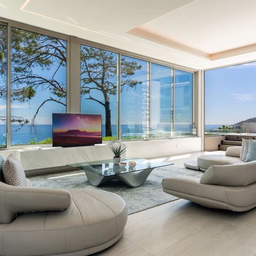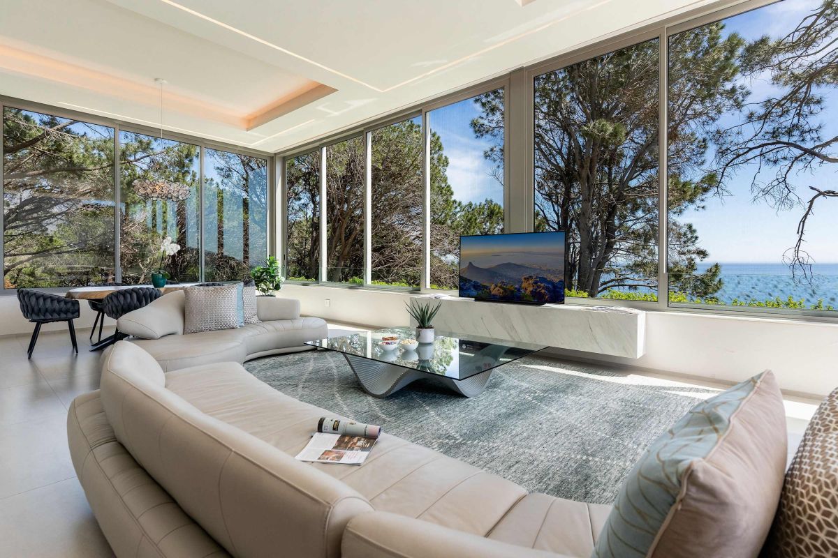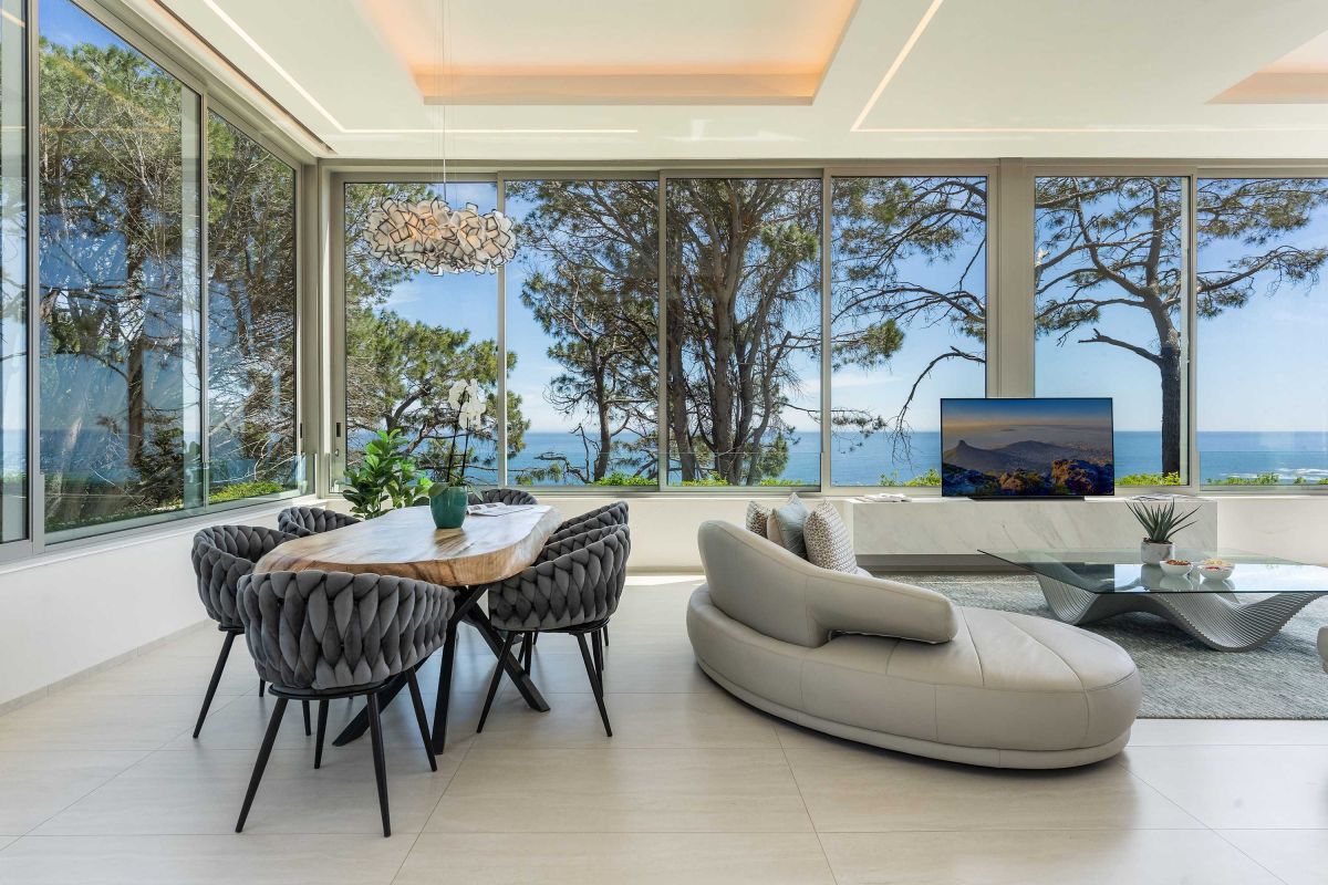 Step inside to discover a light-filled living space where large glass windows blur the line between indoors and out. The stylish lounge, high-end modern kitchen, and elegant dining area flow seamlessly onto a private balcony with private jacuzzi - perfect for sunset cocktails or al fresco dining. A dedicated bar area and an outdoor seating overlooking the coastline elevate the experience, making this home ideal for both relaxation and entertaining.