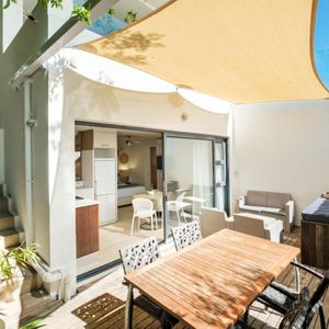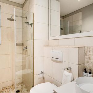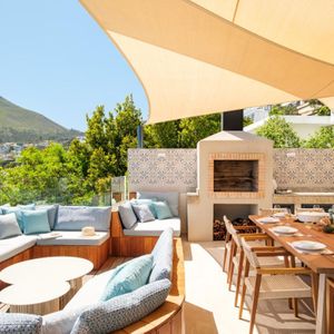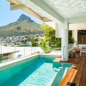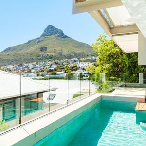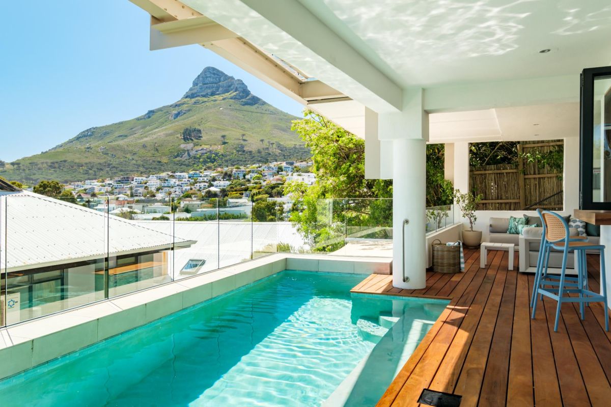 Outdoor spaces include a pool deck with seating for seven, bar seating for two, a dart board, and an upper terrace with dining for twelve, lounge seating for ten, and a wood BBQ. Added conveniences such as a washer and dryer, inverter, and alarm system complete the offering. Perfectly positioned near Camps Bay Beach and the Table Mountain Cableway, The Lookout promises a seamless and stylish holiday experience.