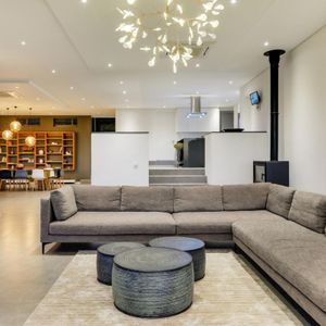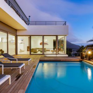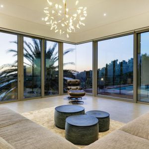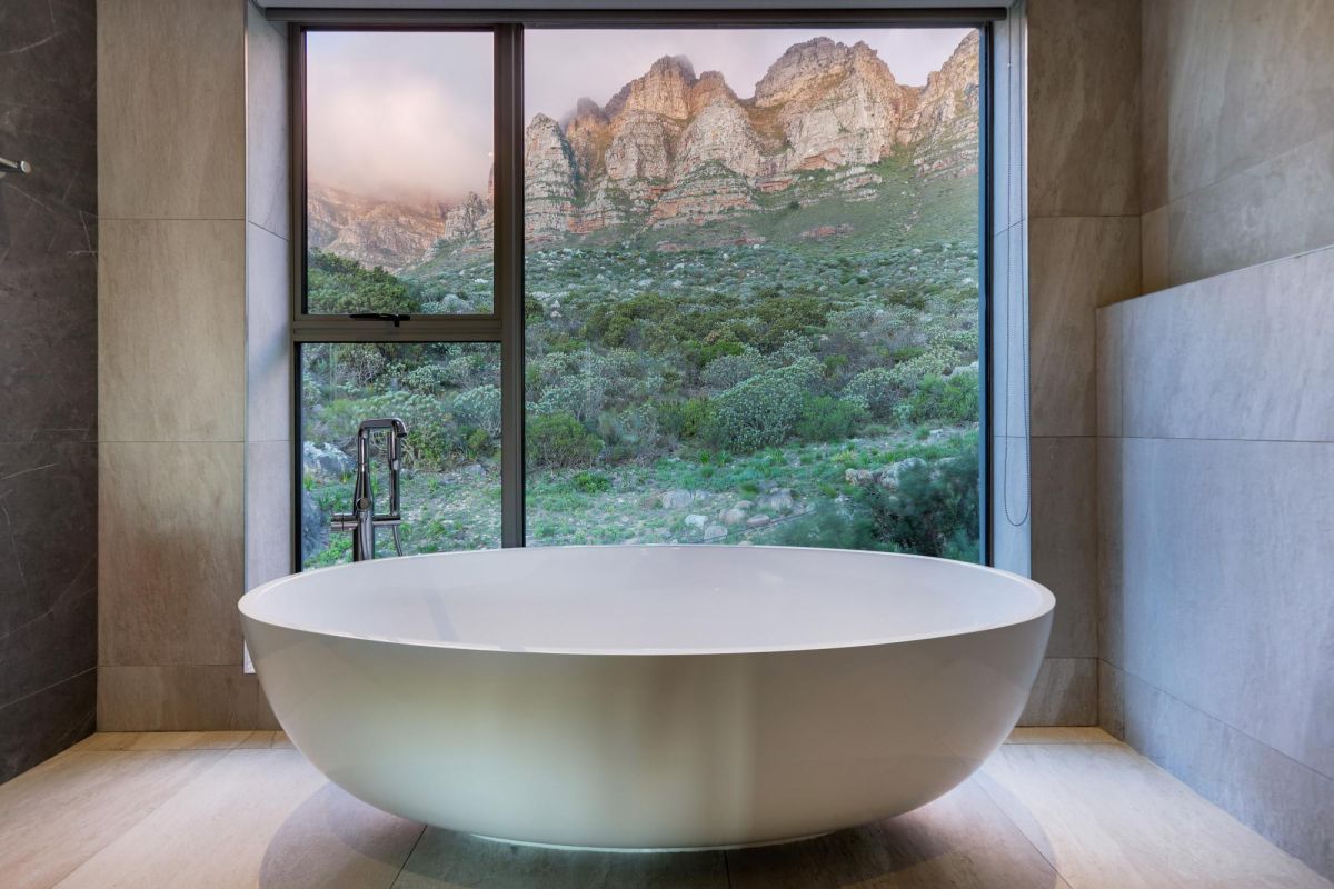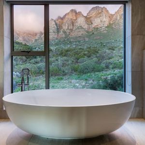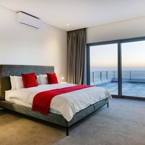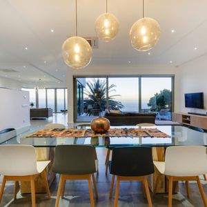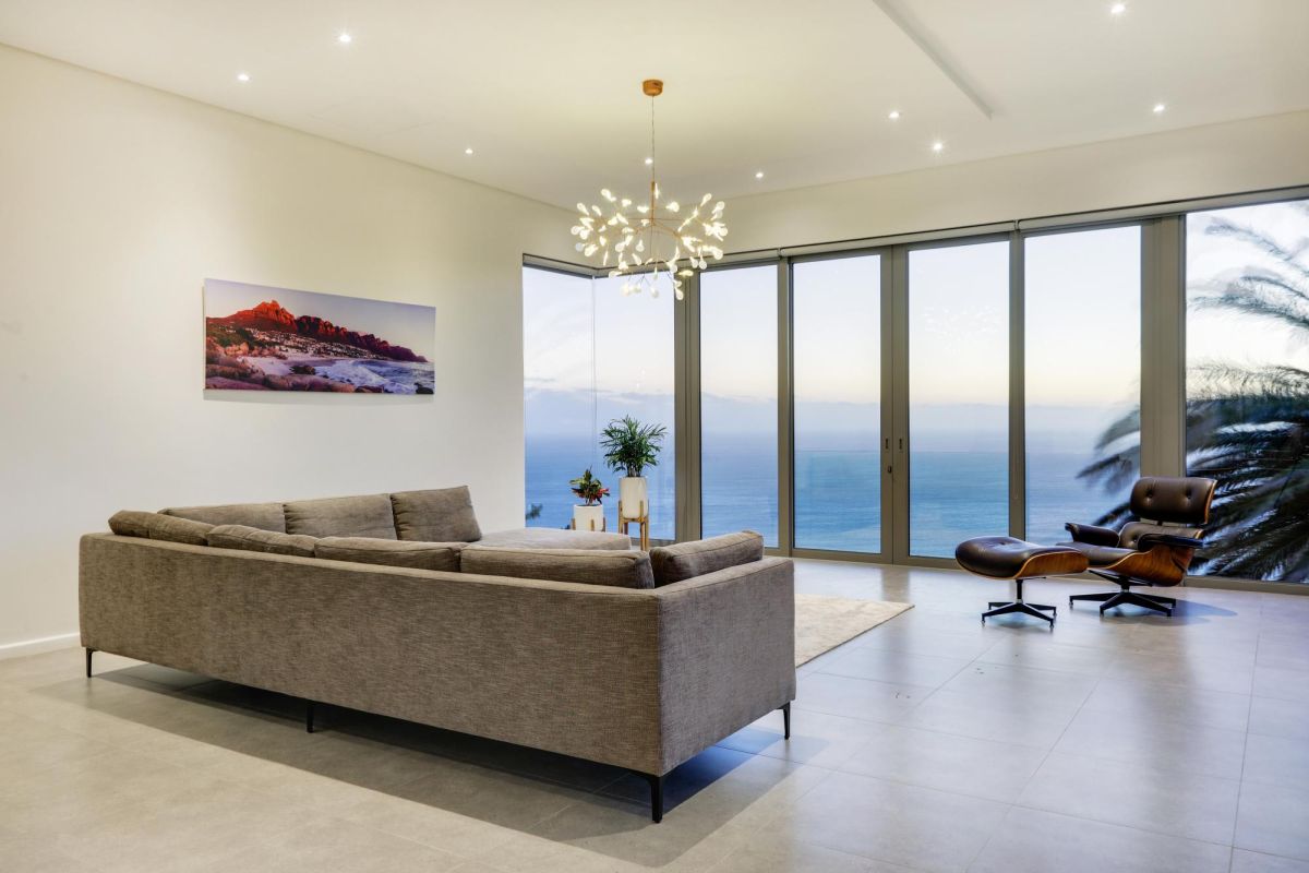 Designed to maximize its dramatic setting, the villa boasts spectacular views from nearly every room—stretching across the Atlantic Ocean, Table Mountain, and Lion’s Head. The architecture blends openness with seclusion, featuring high ceilings, expansive glass doors, and a seamless indoor-outdoor flow.