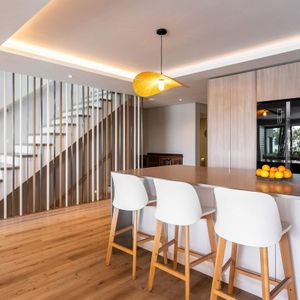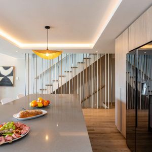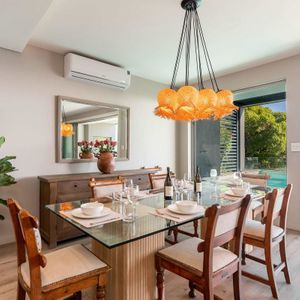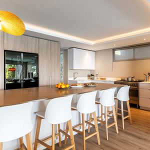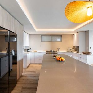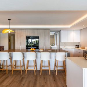Designed with an abundance of space for easy living, Tide View Villa features a modern open-plan kitchen with a large center island. This culinary haven seamlessly flows into the lounge and dining room, creating an ideal space for entertaining guests or enjoying family meals. The adjoining terrace provides a stunning backdrop for any occasion, whether it's a lively gathering or a tranquil afternoon.